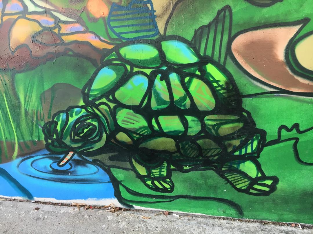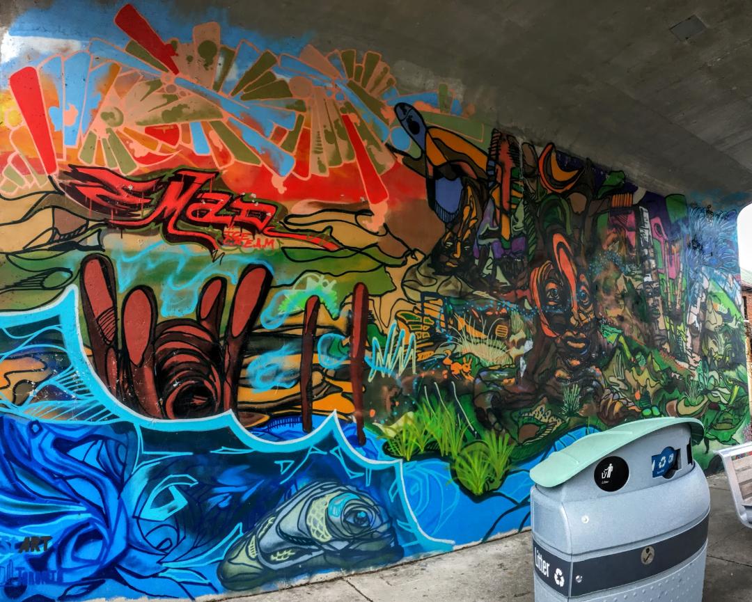 The vibrant colours light up the underpass. You find the best places to find treasure.