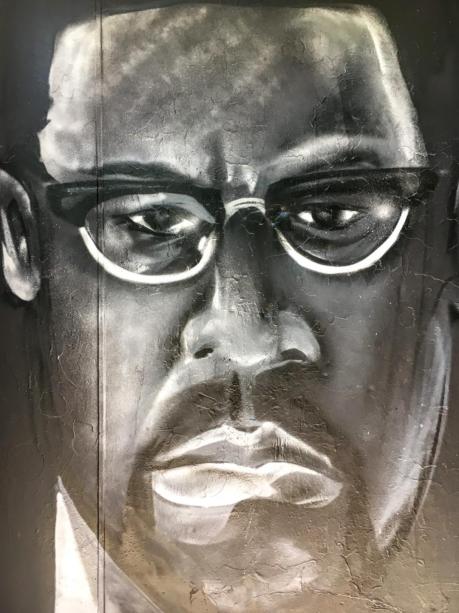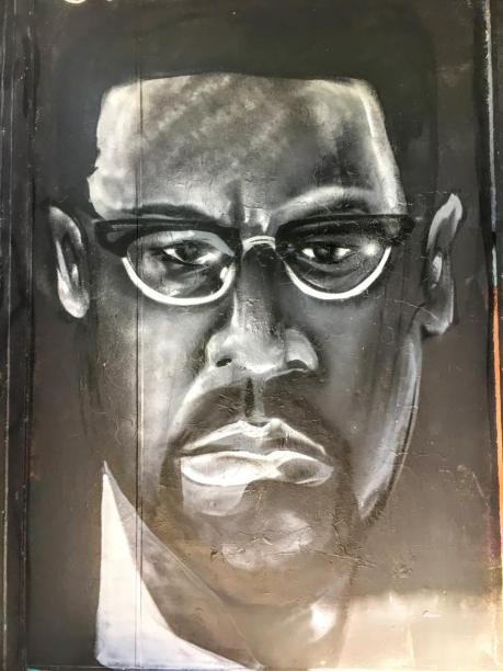 That portrait of Malcolm X is so dramatic from the dark entrance and those white curves [his glasses] make it even more dramatic and striking! So happy to see Toronto artists practicing “Make Art, Not War”!