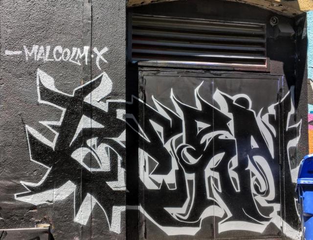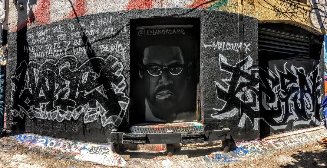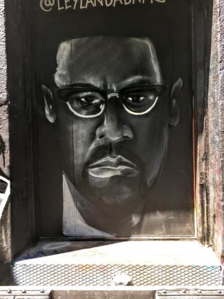 I entered Graffiti Alley from the west end. I was greeted by a mural of Malcom X.