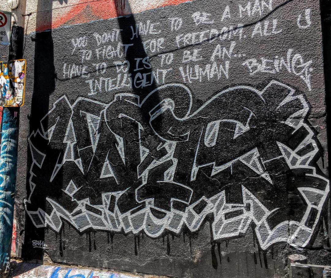 Graffiti Alley has been a place for graffiti and artists for many years, in Toronto. So, this is where they gathered to paint their messages, frustrations, angers and they also painted heroes.