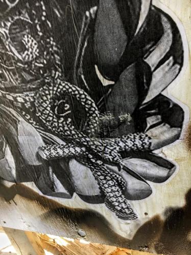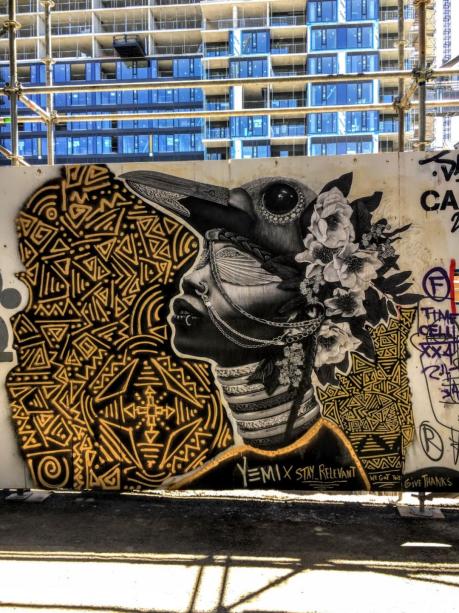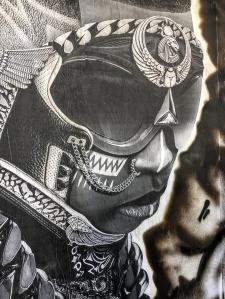 I did notice the symbolism and mythology…. and the ancient textile art of mud cloth that goes back to the 12th century. It is a remarkable piece. Like all street art, it is ephemeral. This is why I take pics. Hug-os!