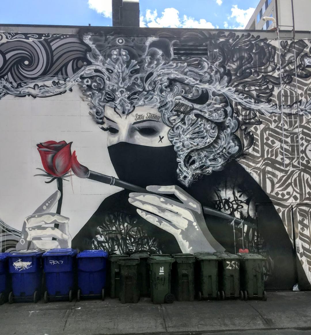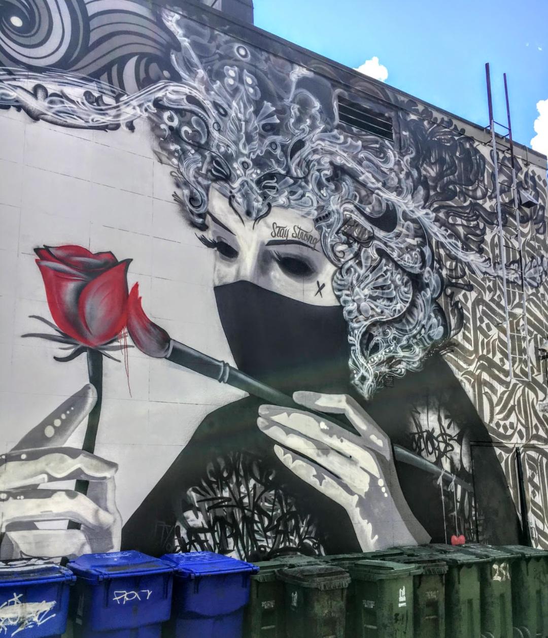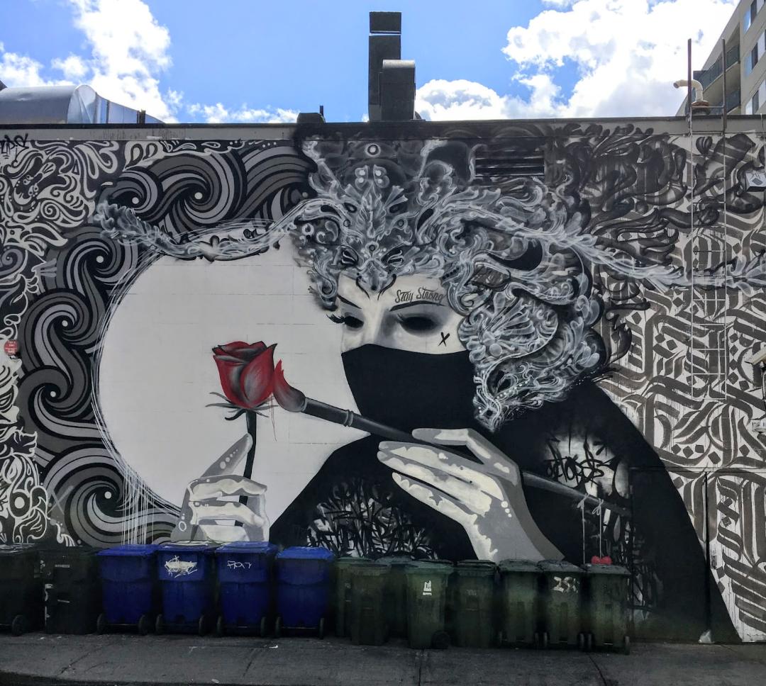 Artists have a marvelous way of sending compassionate and comforting messages to the world. The rose & the mask – brilliant symbolism. Stay strong and be well… Hugs coming your way.
