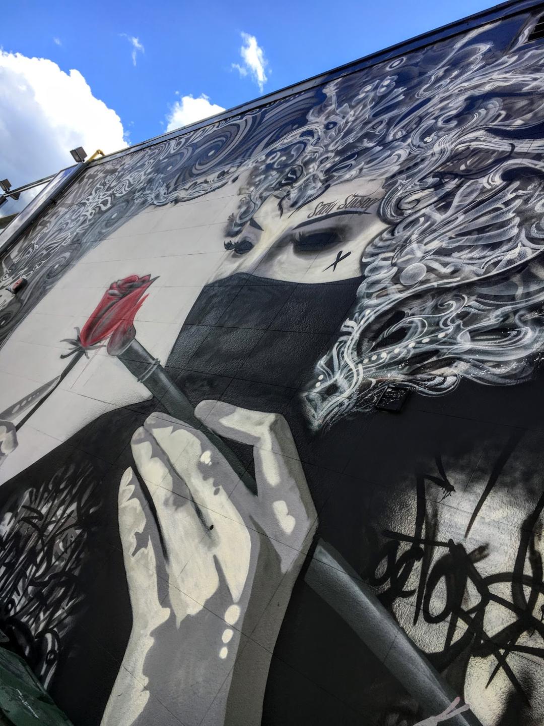 Another amazing wall of art and yet it is obscured by street furniture again! Luckily I can see most of the image and the important parts. And I am going to have to take heed and inspiration from this picture as I need to install Windows again for the fourth time since Feb….so if I seem to disappear for a long time don’t worry, I’ll be busy trying to get a working laptop! Thanks for the post and stay safe.