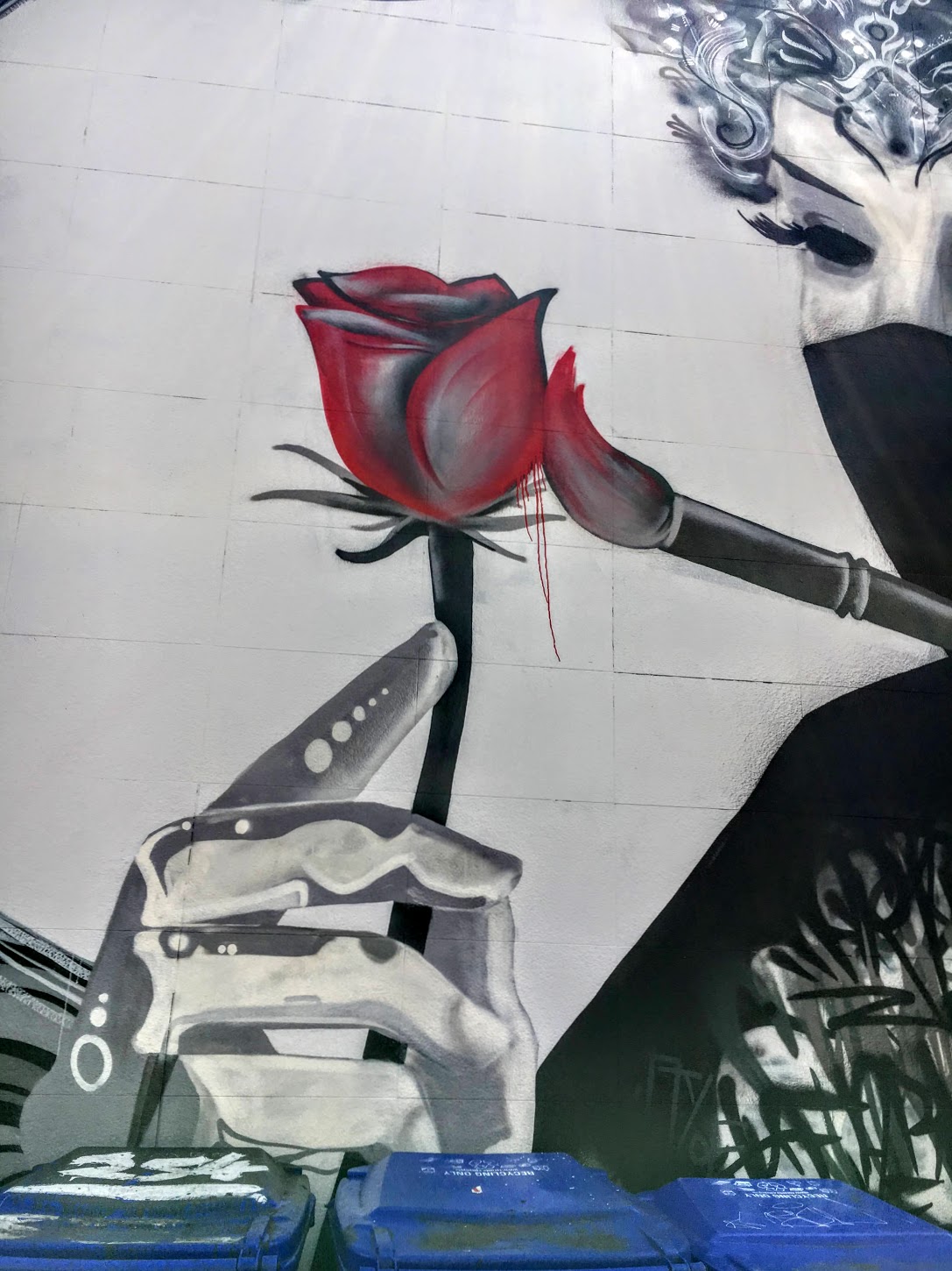 Lol! I decided a long time ago that bins, signs, cars and whatnot all work with street art. Usually I can shoot around it, shoot the reflections, etc. I’ve only been totally thwarted once.