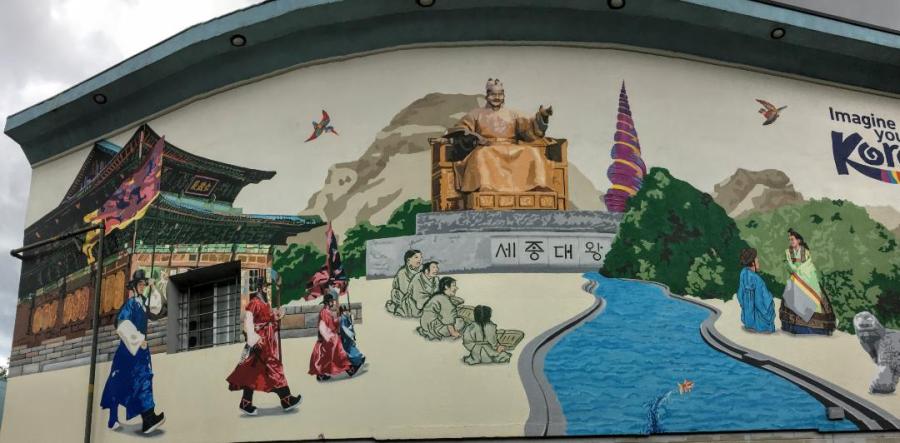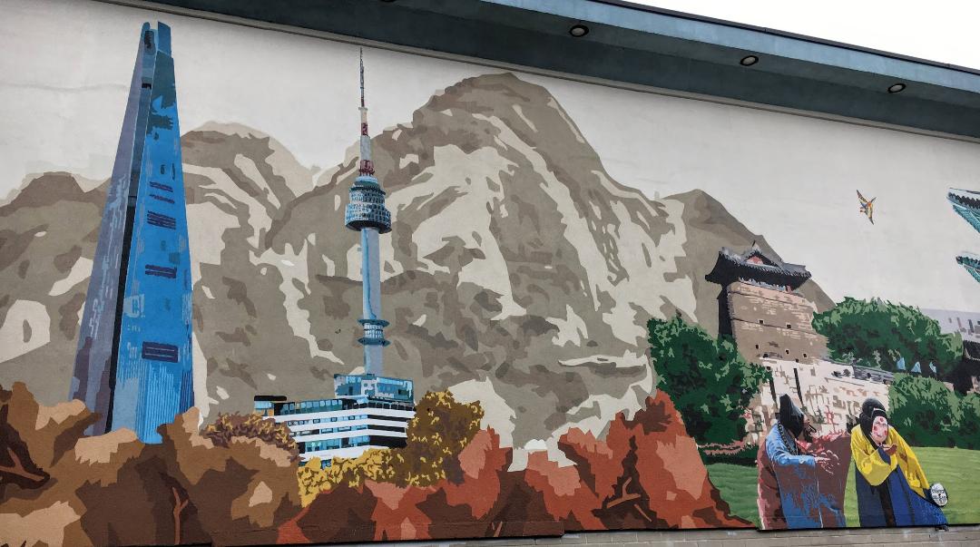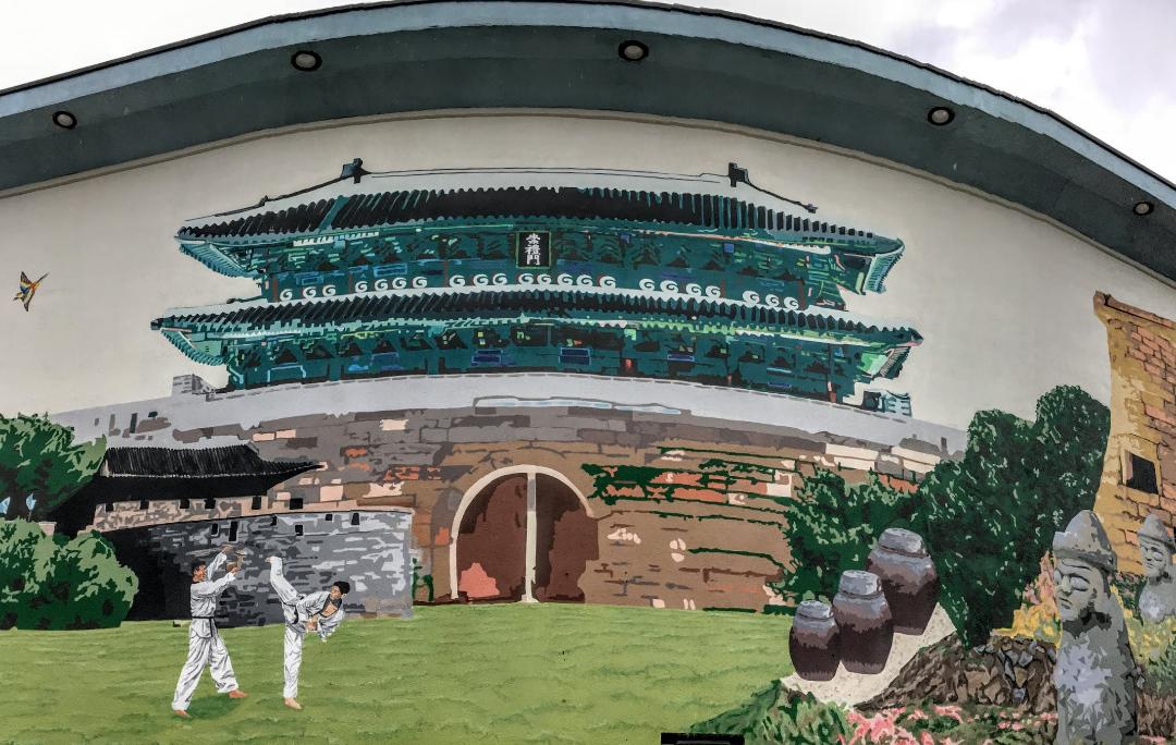 This cultural Korean mural is found in Koreatown, Toronto.