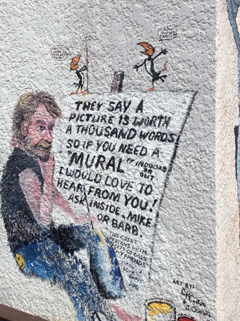 Also, I was looking at the art again. It doesn’t help the 2 wrinkly rock stars that they are painted on a heavily textured stucco. You should see the Steve McQueen – Bullit Poster, on the other side of the building! LOL!