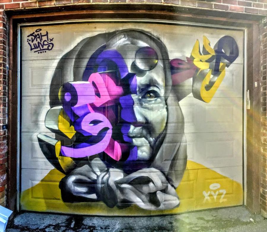One side is grey, passive and the other exploding in colors, Yin and Yang? I think the artists have a good laugh at the interpretations. A special mural!