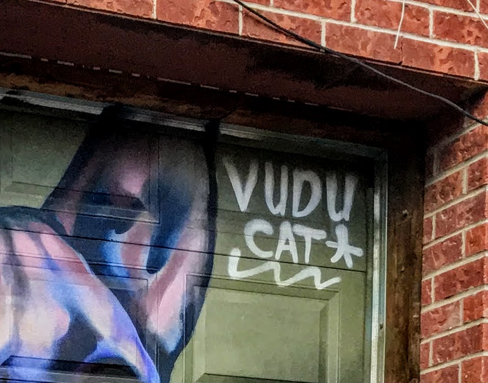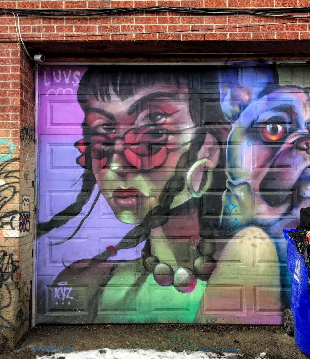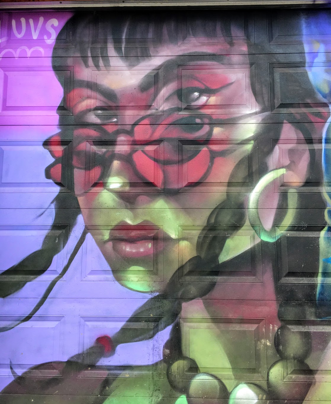 Definitely a fun and colorful mural with a wonderful palate. I’m wondering what the artist was thinking with the multiple images of her but clarity with the dog.