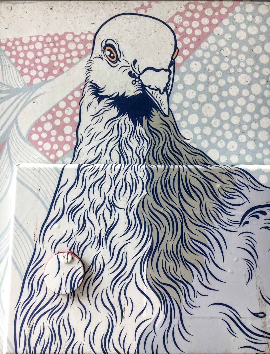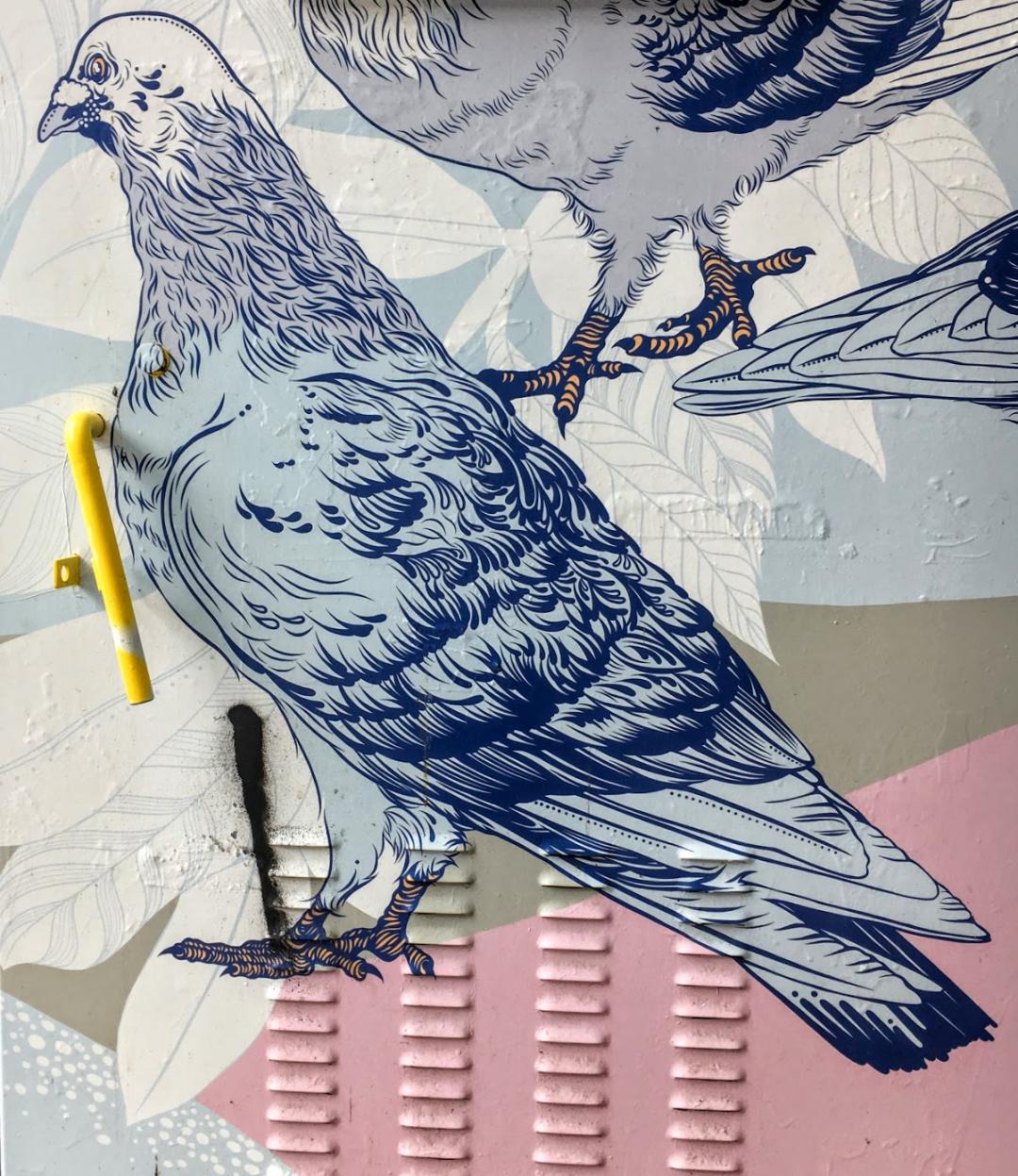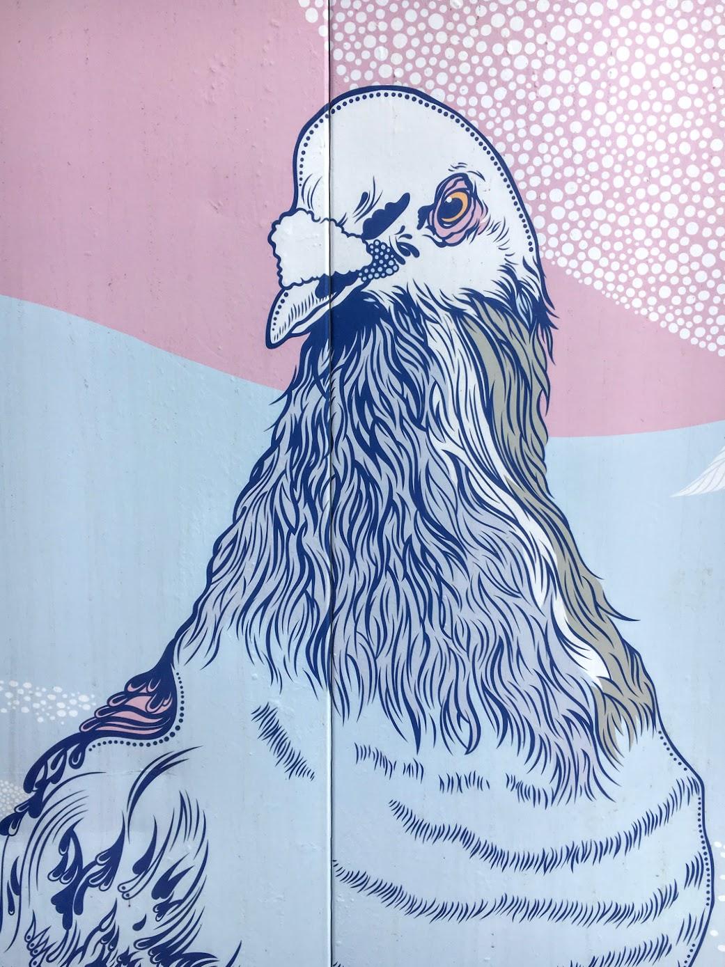 I just read that pigeons are incredibly complex and intelligent animals. They can recognise each letter of the human alphabet, differentiate between photographs, and even distinguish different humans within a photograph. A wonderful mural and a great collection of photos for our friends, the pigeons.