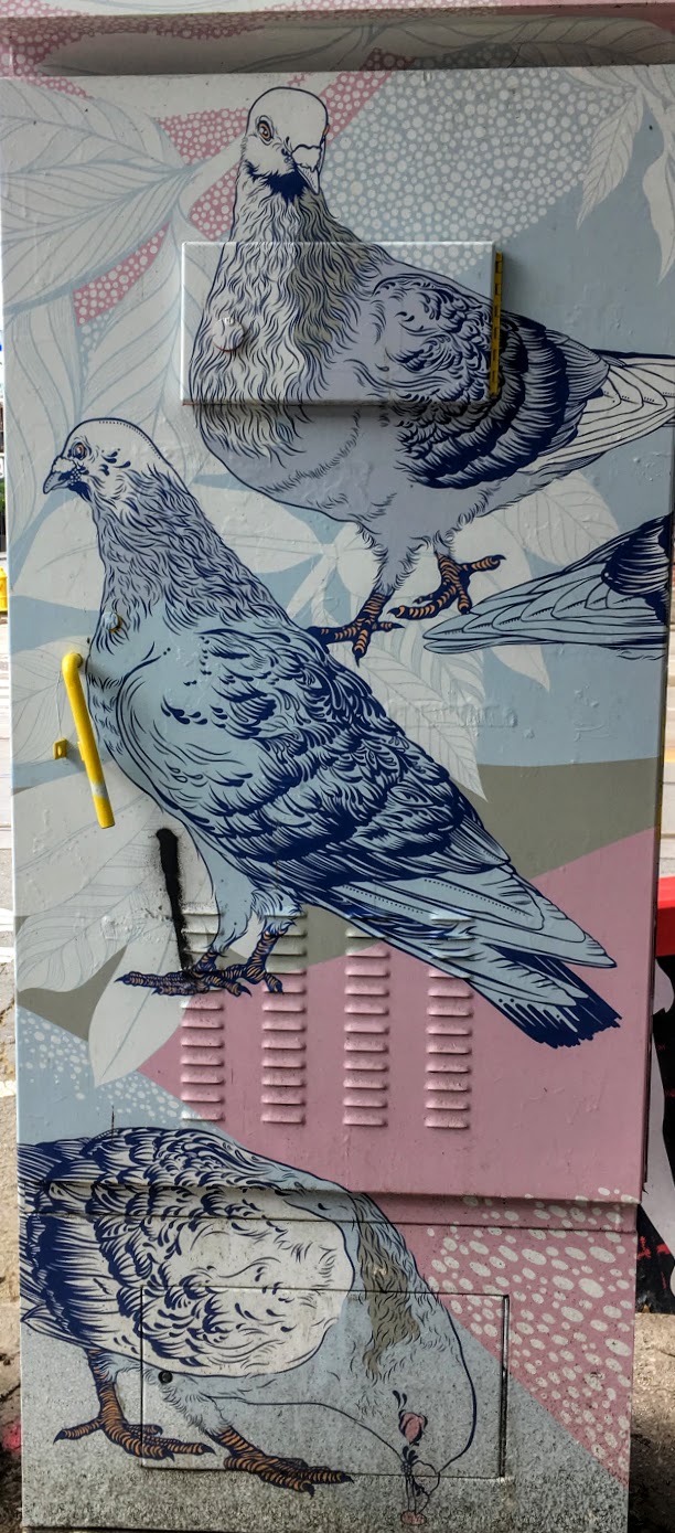 I thought of Gigi – Rethinking Life when I found these pigeons on a power box.