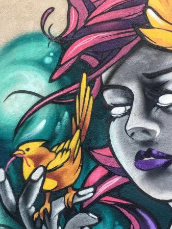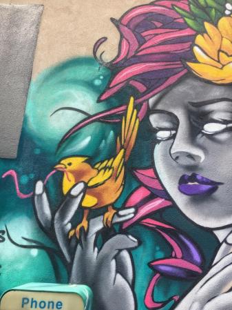 She’s beautiful and so is the yellow bird. A 3 hour drive to get your Mail? That seems a little excessive. But you did find this gorgeous mural.