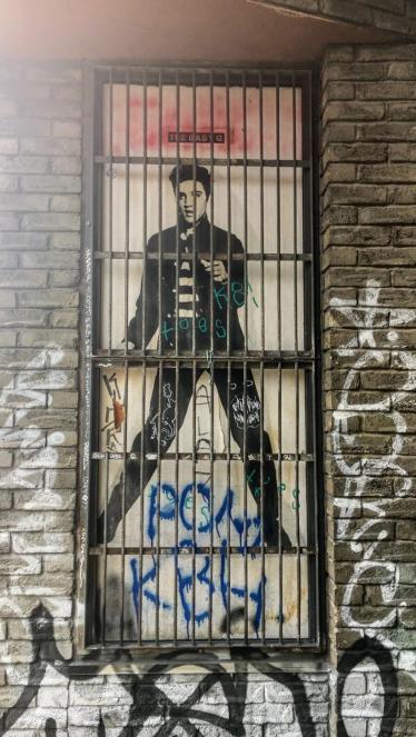 I found this Elvis up the road. It’s painted on an opaque plastic, with kind of tiny bubbles in it.