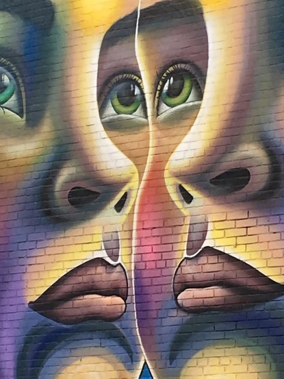 Hi there Resa, yet another another awesome artwork. In the first picture you post I can see a “Rubin’s Vase” type of optical illusion where the innermost eyes and outline created by the shape of the two noses seem to form the head and face of an “alien” creature. But then the remainder of this mural seems rooted to Earth bound nature so I might just be imagining things.
