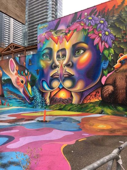 Oh, I love this mural and as you zoomed out it got better and better with the cherry -imho- being the one with the painted floor and rain puddles reflecting more color. WOW! Needless to say that deer is precious (okay, and bear and eagle). A party of colors!!!!