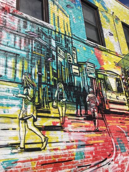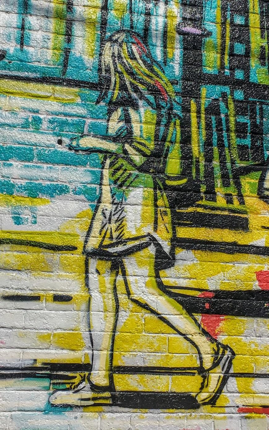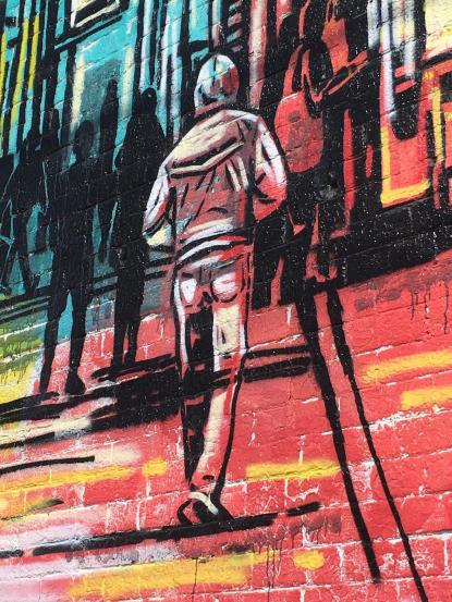I was quite intrigued when I saw this mural. It’s an unusual style for street art.