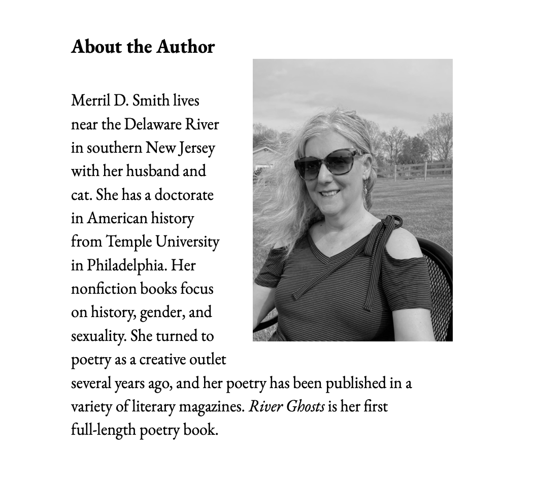 Always sincere, never maudlin, Merril’s poems have swept me onto the river of ghosts.