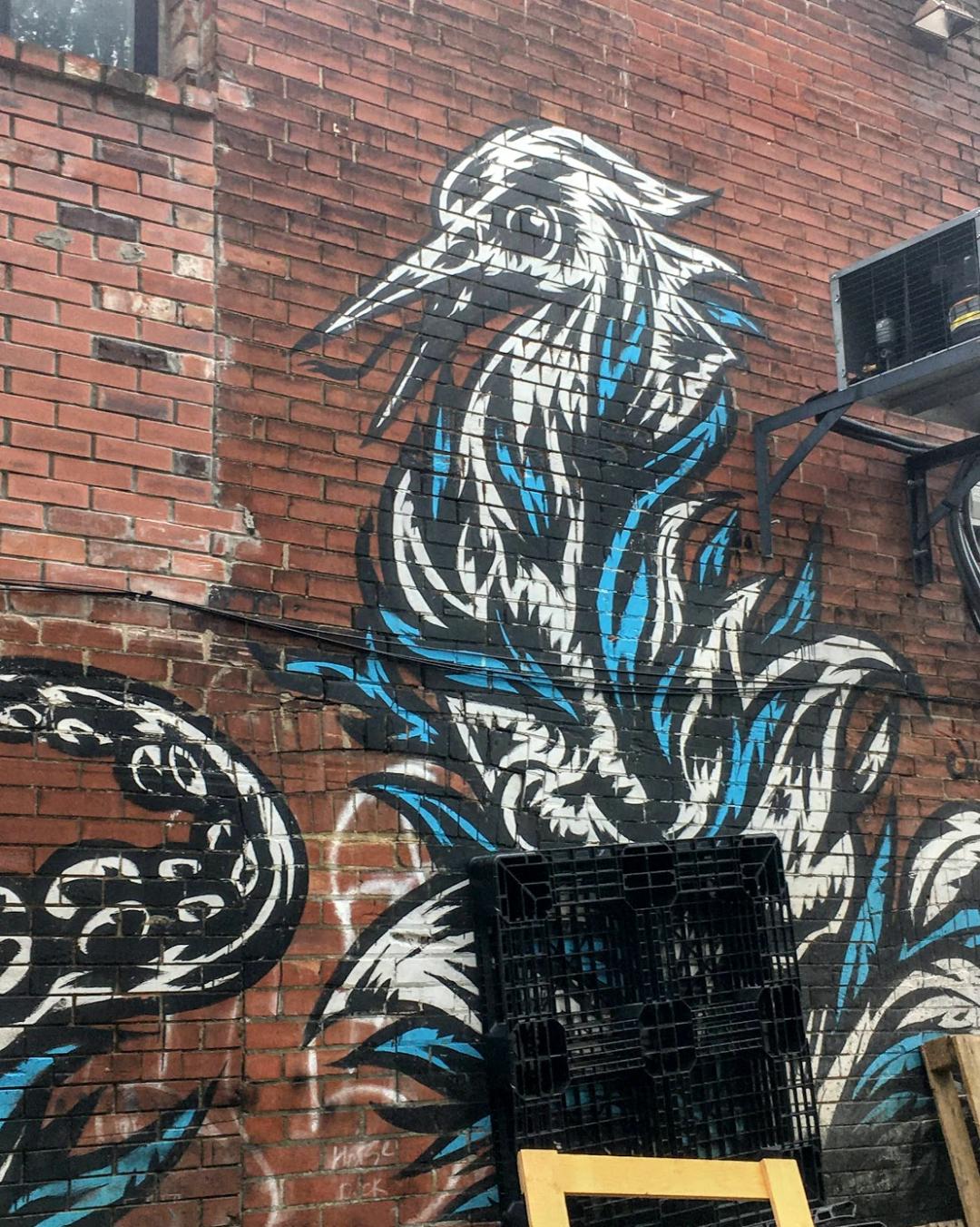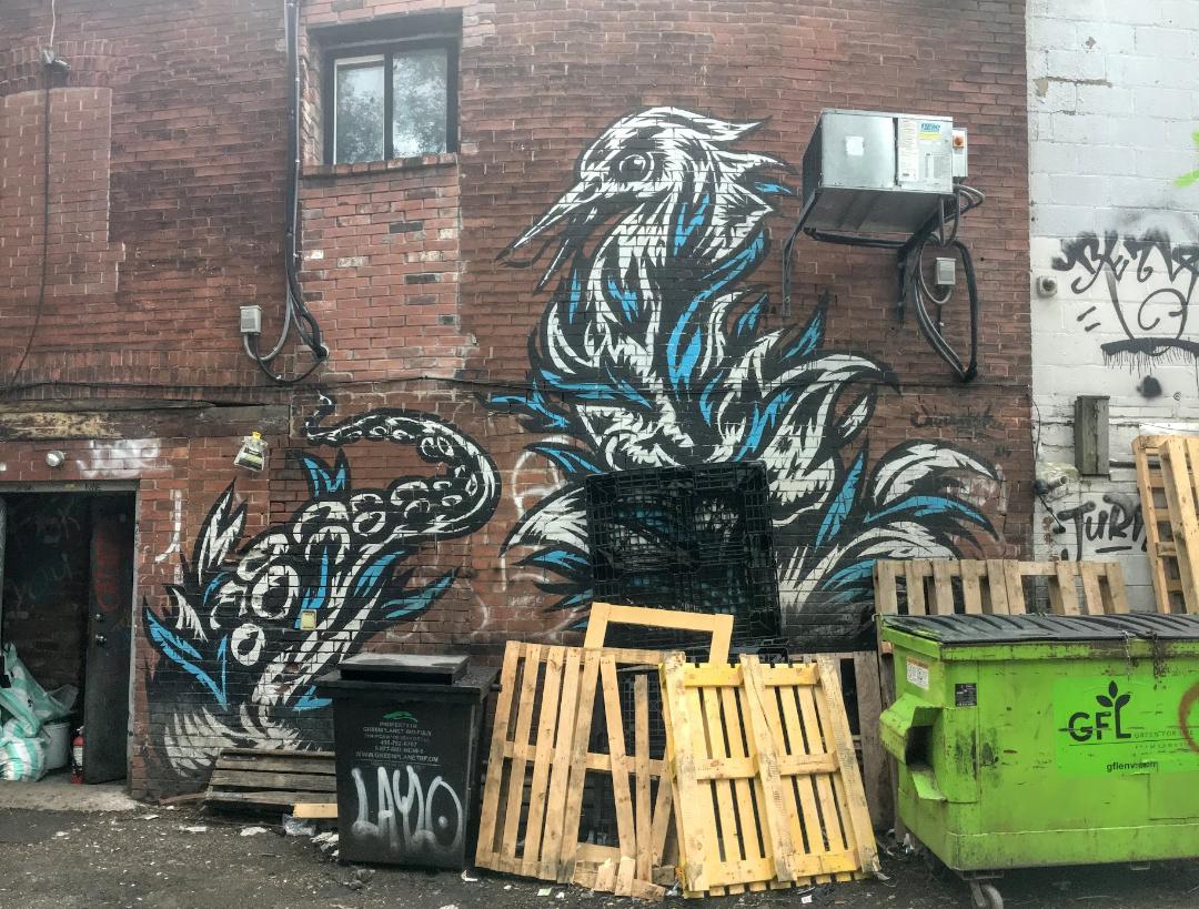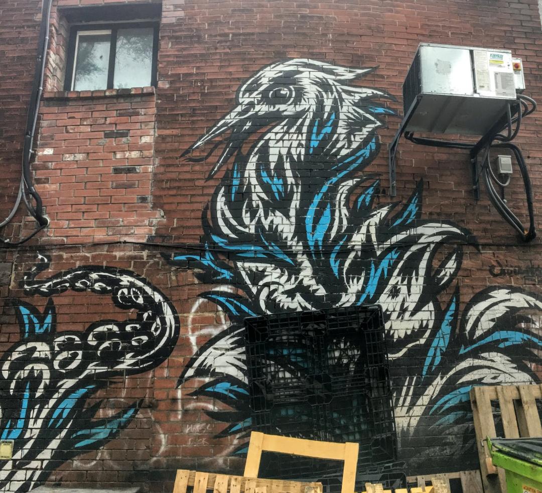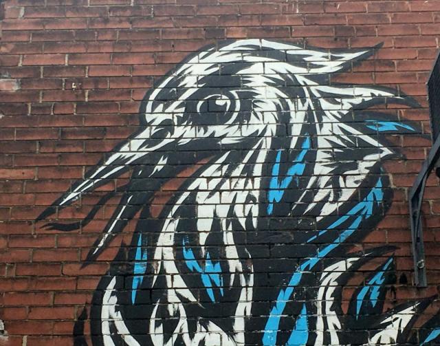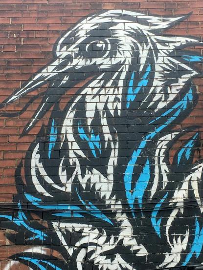 The fantastic bird springs from the fire ready to attack its prey. Toronto walls are artistic, Resa!