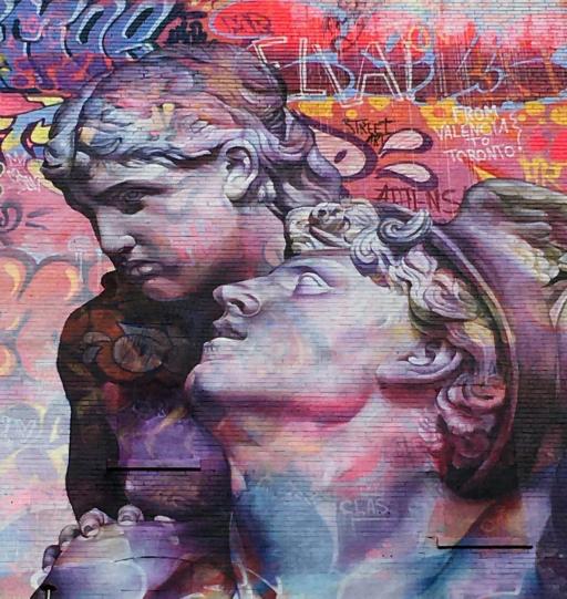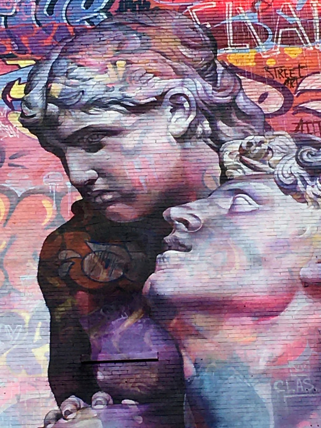 I was singing the song before you mentioned it! Iconic and powerful captures, Resa. You position the camera to obtain the best views for us. It is not easy to to this, given all of the signage, cars, and other disruptions that obscure our view. Do you know who the mural artist is? This mural brings out the love story of Mercury and Psyche beautifully!!
