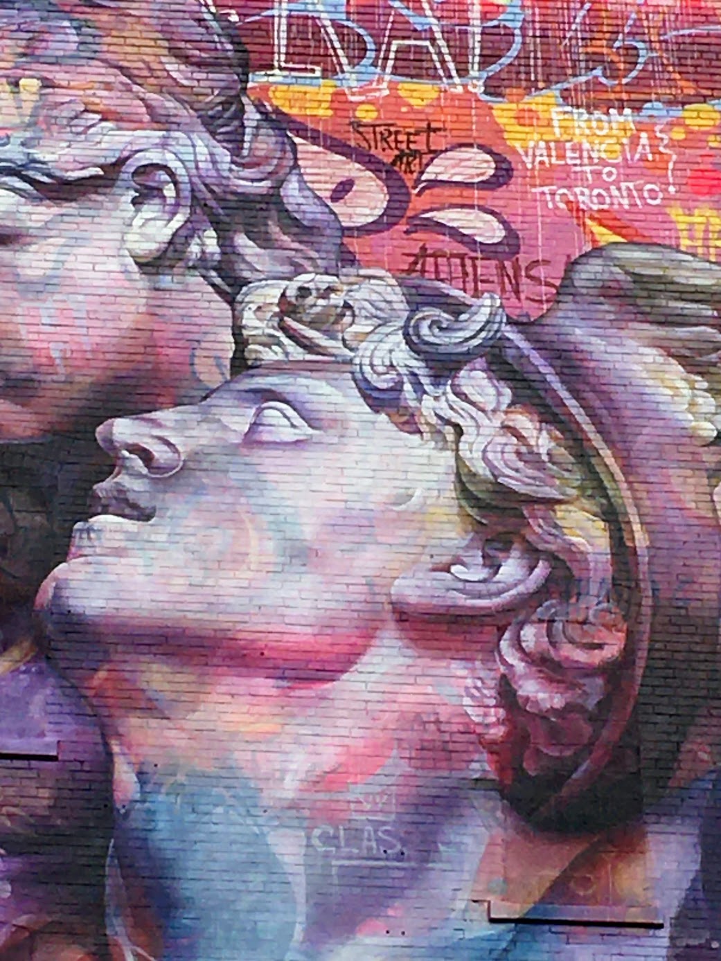 That’s one big mural and definitely gaga-worthy. To me its a blending of two styles that are centuries apart, which I enjoy. Cheers to the bit of Joni Mitchell.