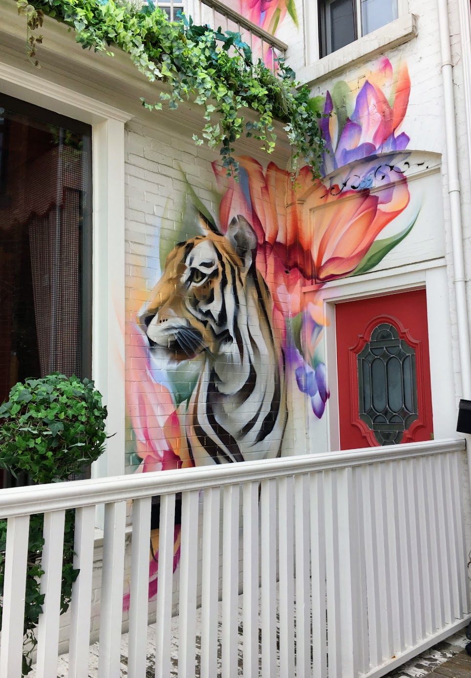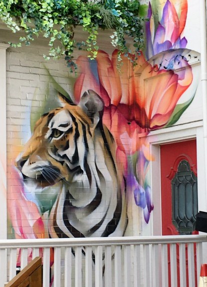 What an amazing mural! Tiger is gorgeous and I love all the flowers surrounding her!