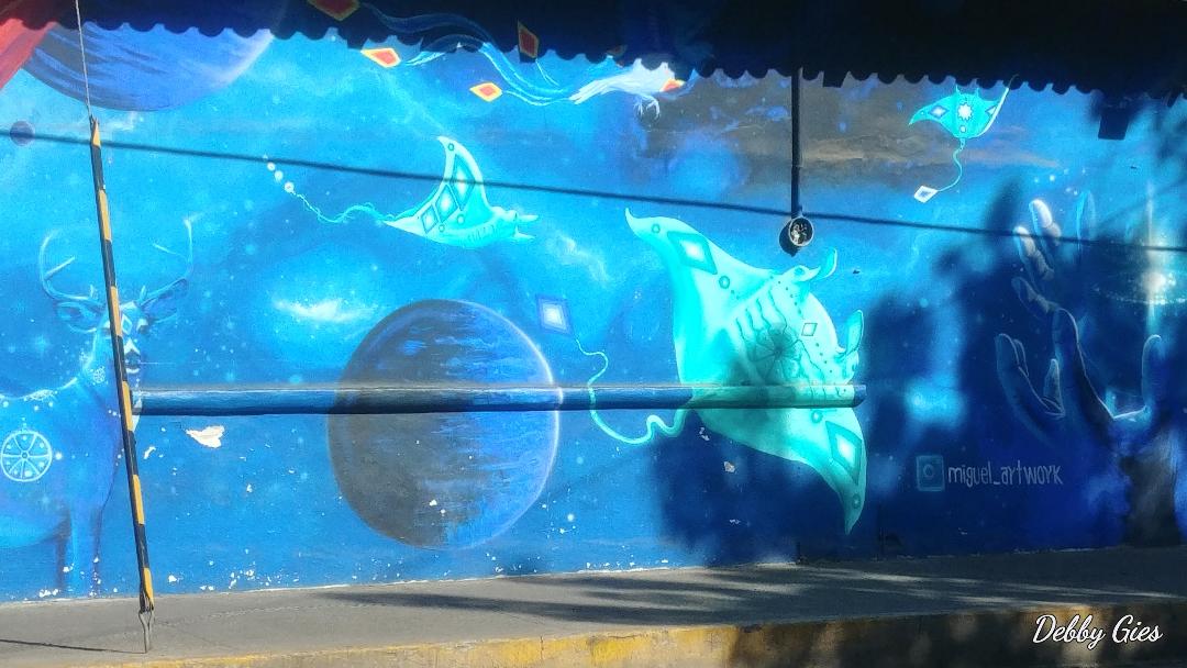 D.G – The above shot and the next one were taken at the La Cruz market. Above, the artist featured paintings. The next one was a mural painted on a storefront entrance.
