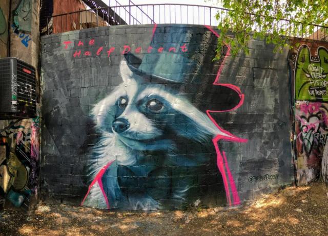 Hello Resa, as I’ve mentioned before I am lucky and live on the outskirts of town and there is a nature reserve nearby so I see a lot of wildlife venturing into the urban environment – Grey Squirrels, Hedgehogs, Owls and Bats…but none quite as cute as a Raccoon. Or this mural! I’m always reminded of “Rocket Raccoon” from Marvels’ Guardians of the Galaxy or as he was known in real life Oreo when I see one.