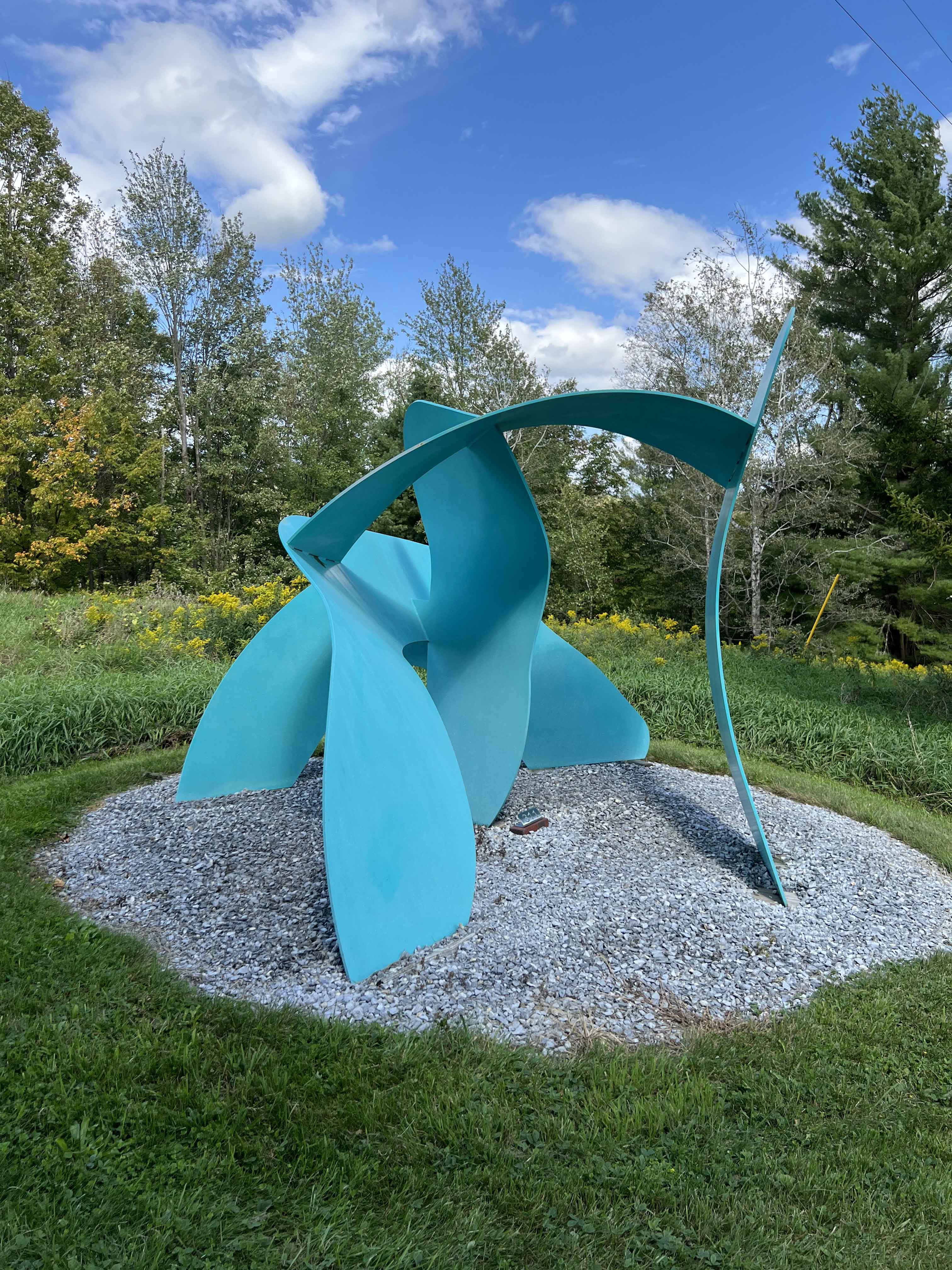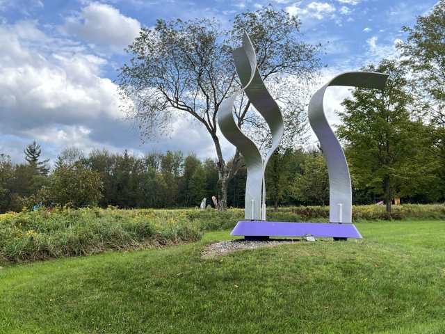 Liz -Today, I’m taking your readers to Cold Hollow Sculpture Park in Enosburg, Vermont. The park features dozens of sculptor David Stromeyer’s large-scale abstract metal sculptures spread over 45 acres of hay field.