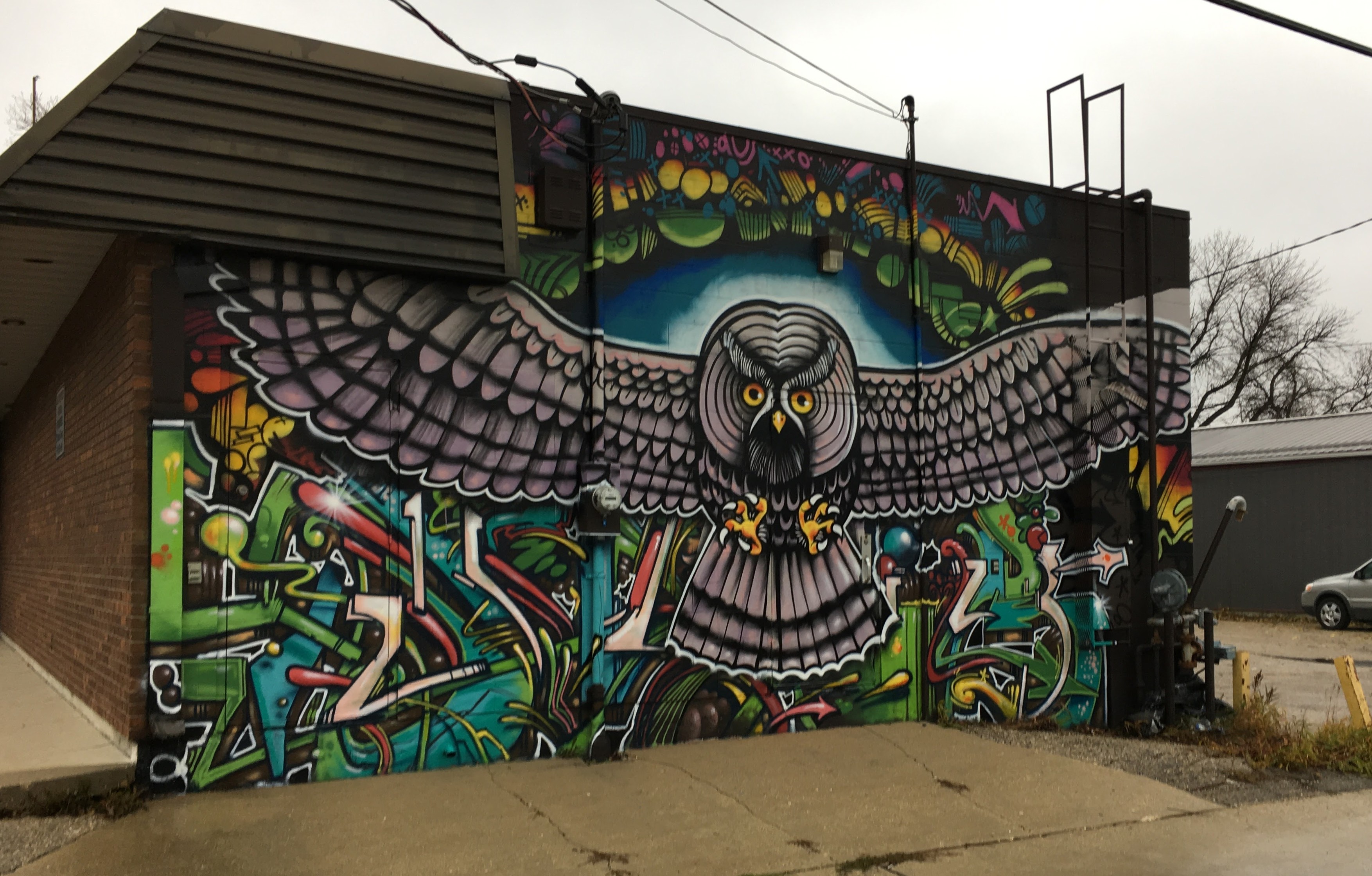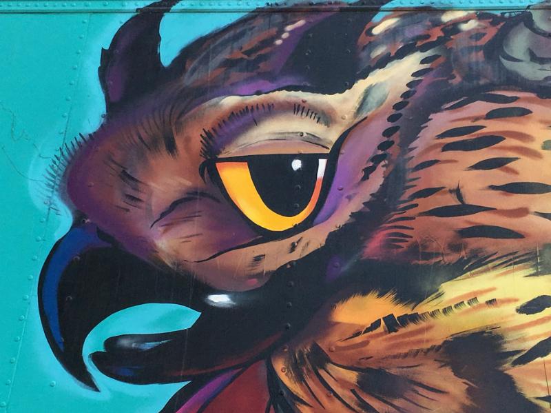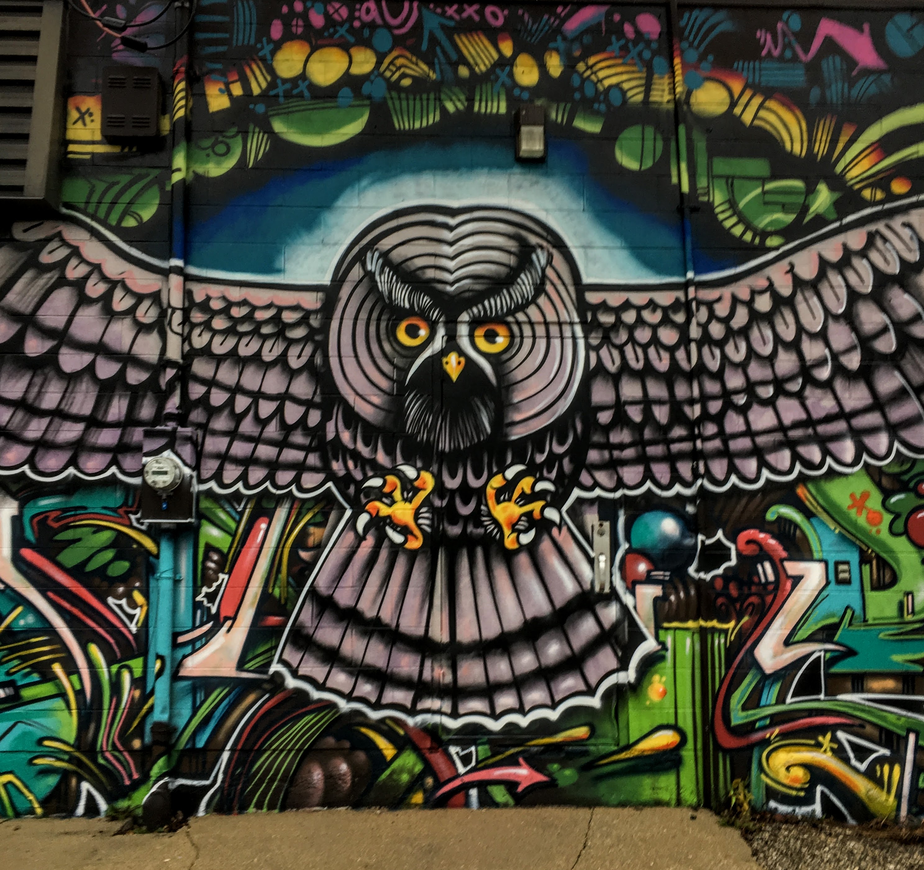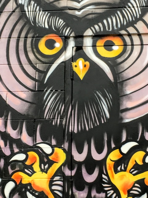 I found this painted owl on the side of a tiny building in Winnipeg.