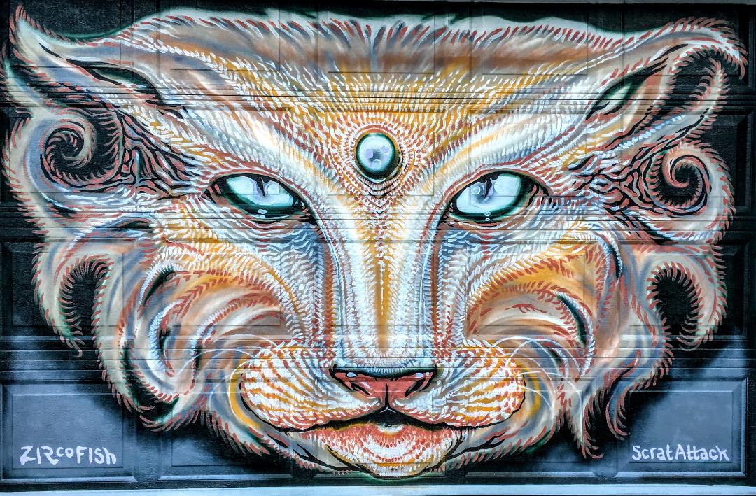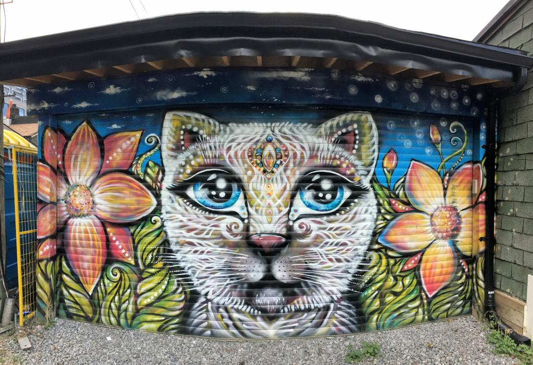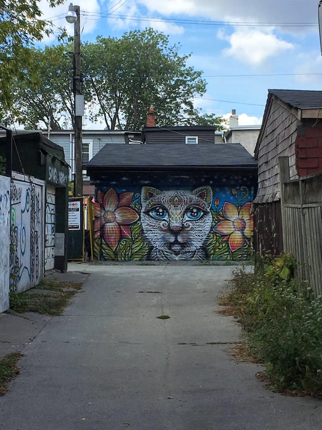 Someone told me about this new garage door with a tiger on it, in an alley near Kensington Market.