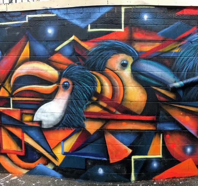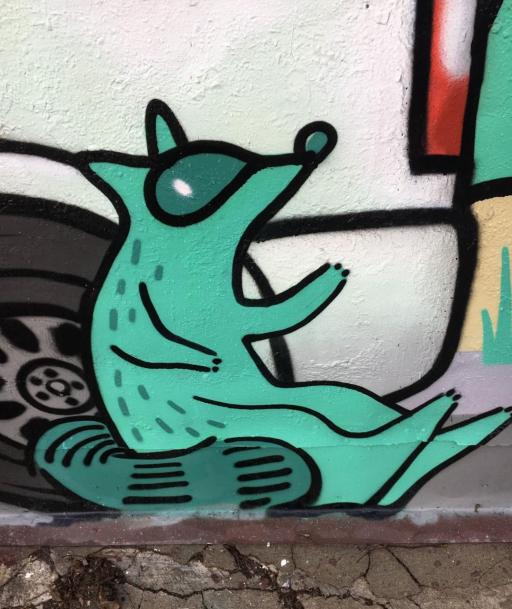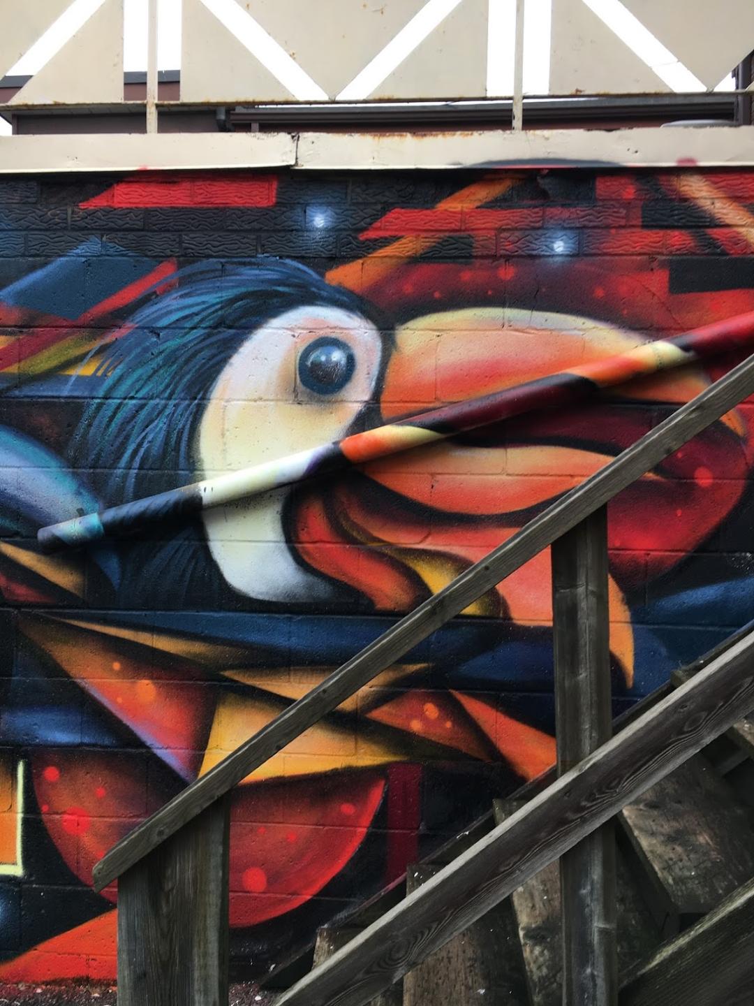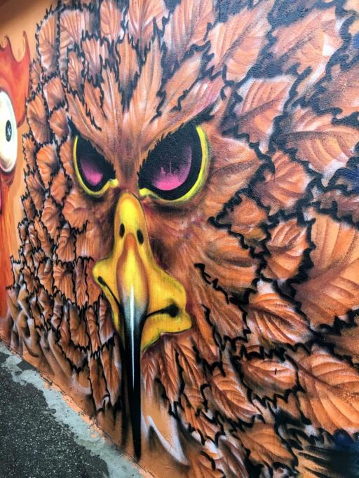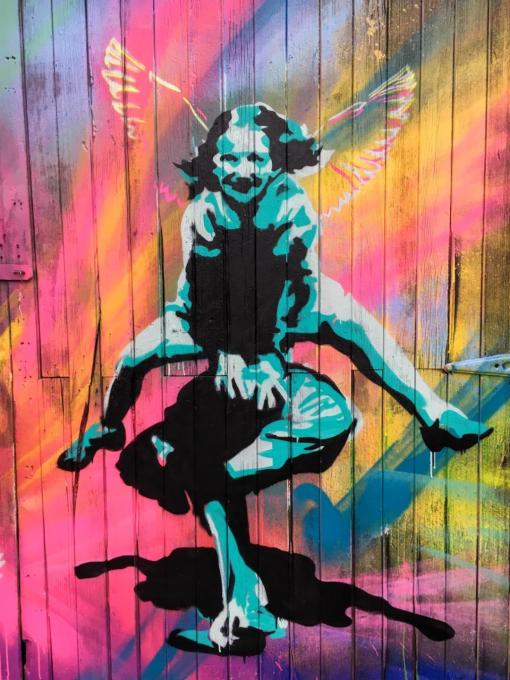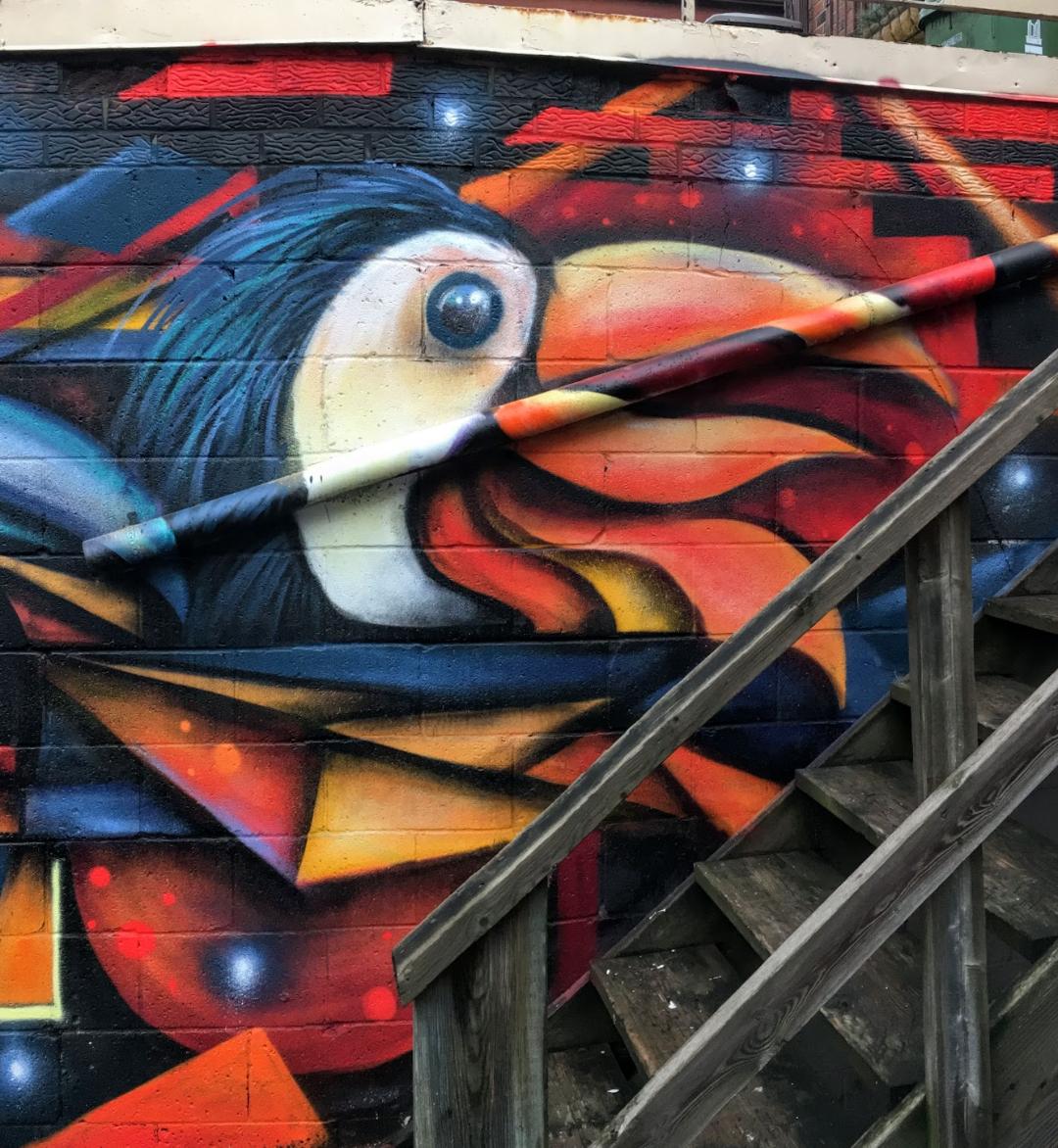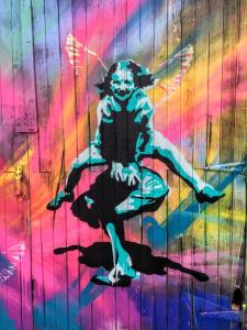 This alley was painted as a tribute to Barry Luksenberg, who performed under the name “Feel Good”. At 24, he was killed in a motorcycle accident while travelling across Vietnam with a friend.