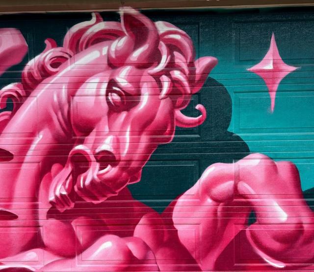 Same artist as the fence at the end of Alley Gallery. There were 4 in 1 alley – in the slideshow.