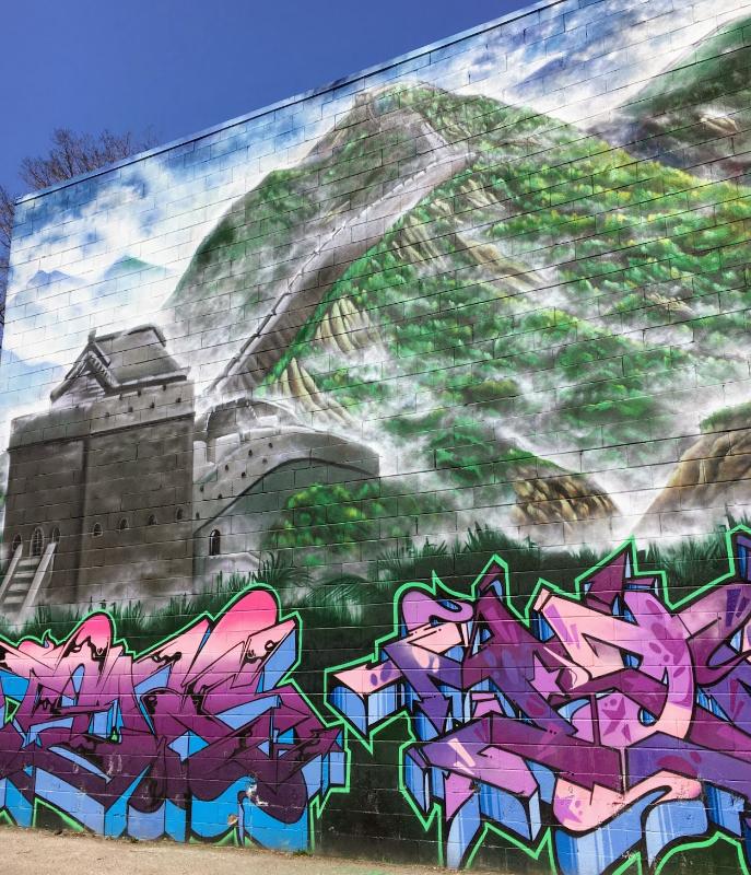 The Artists: This painting is part of a project of 7 wonders of the world. Mike Kennedy became project coordinator. Many artists, including students were involved.