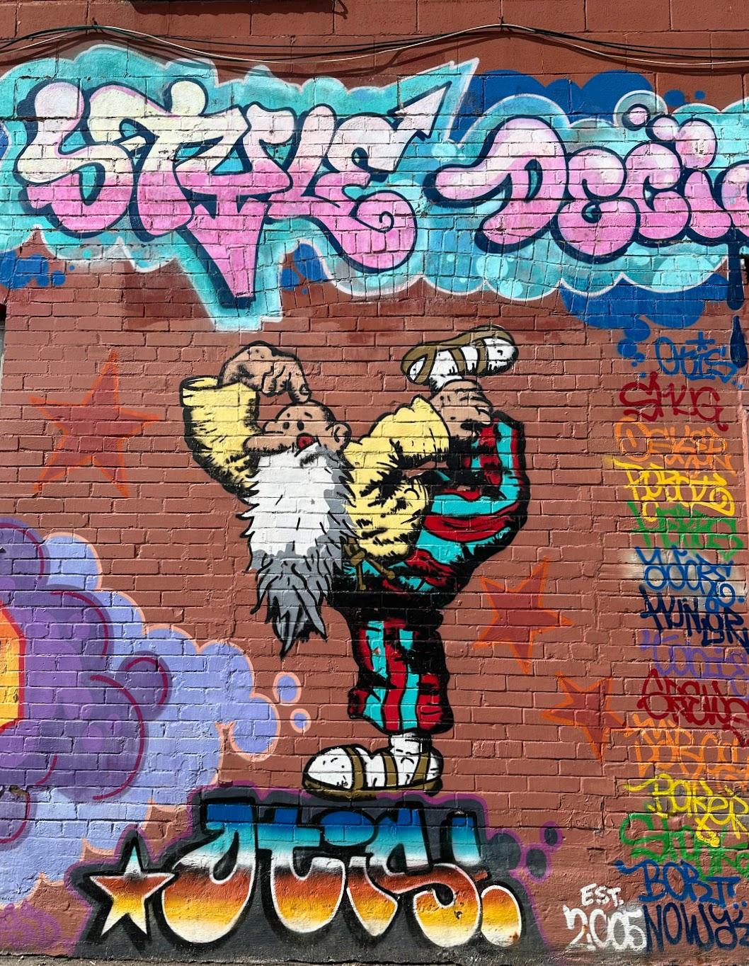 Having recently had a comments chat with Matt about underground comix, I was like OH, Matt would love this alley. I sent him a couple of pix, Mr. Wonderful and the one below.
