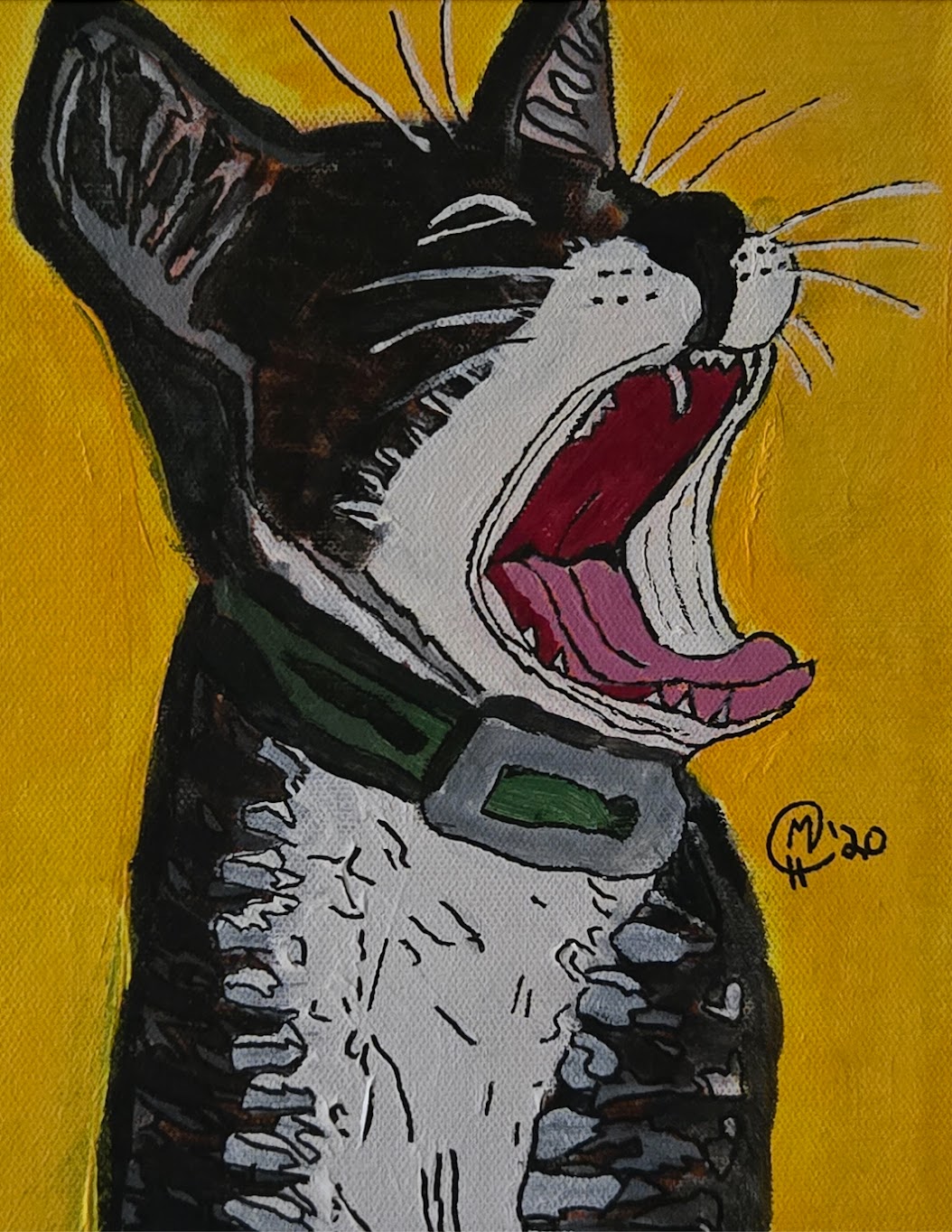I was aware of Pop Artists when I was in high school in the 80’s. I was also an avid comic collector. I loved that Lichtenstein didn’t just recreate comic panels with his own wry humour in the thought & dialogue balloons of the character but he also recreated the dot printing process in large format. That aspect of his work made me interested in trying creative techniques. I wish I still had it But I did an ode to Lichtenstien Medium sized acrylic painting and injected my own weird sense of humor into the thought balloon of the woman in distress.