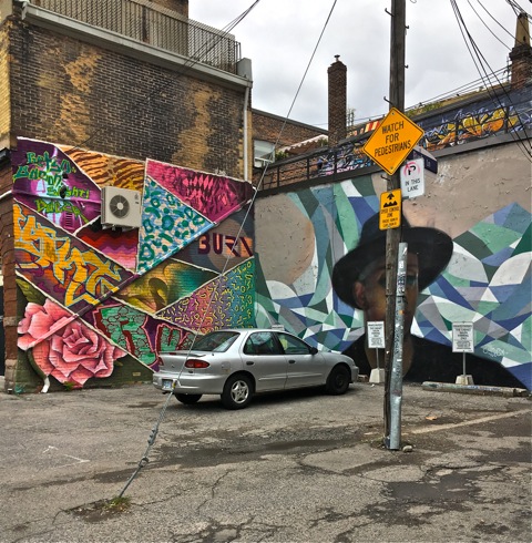 On my latest trip to Graffiti Alley, there was something going on in the alley, like some kind of surveying.