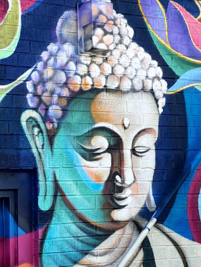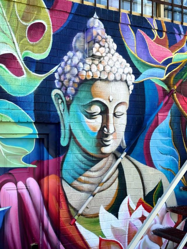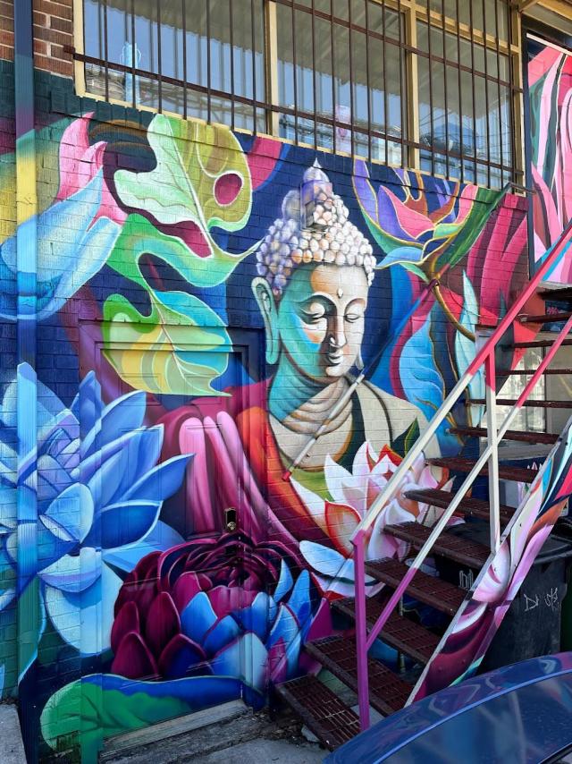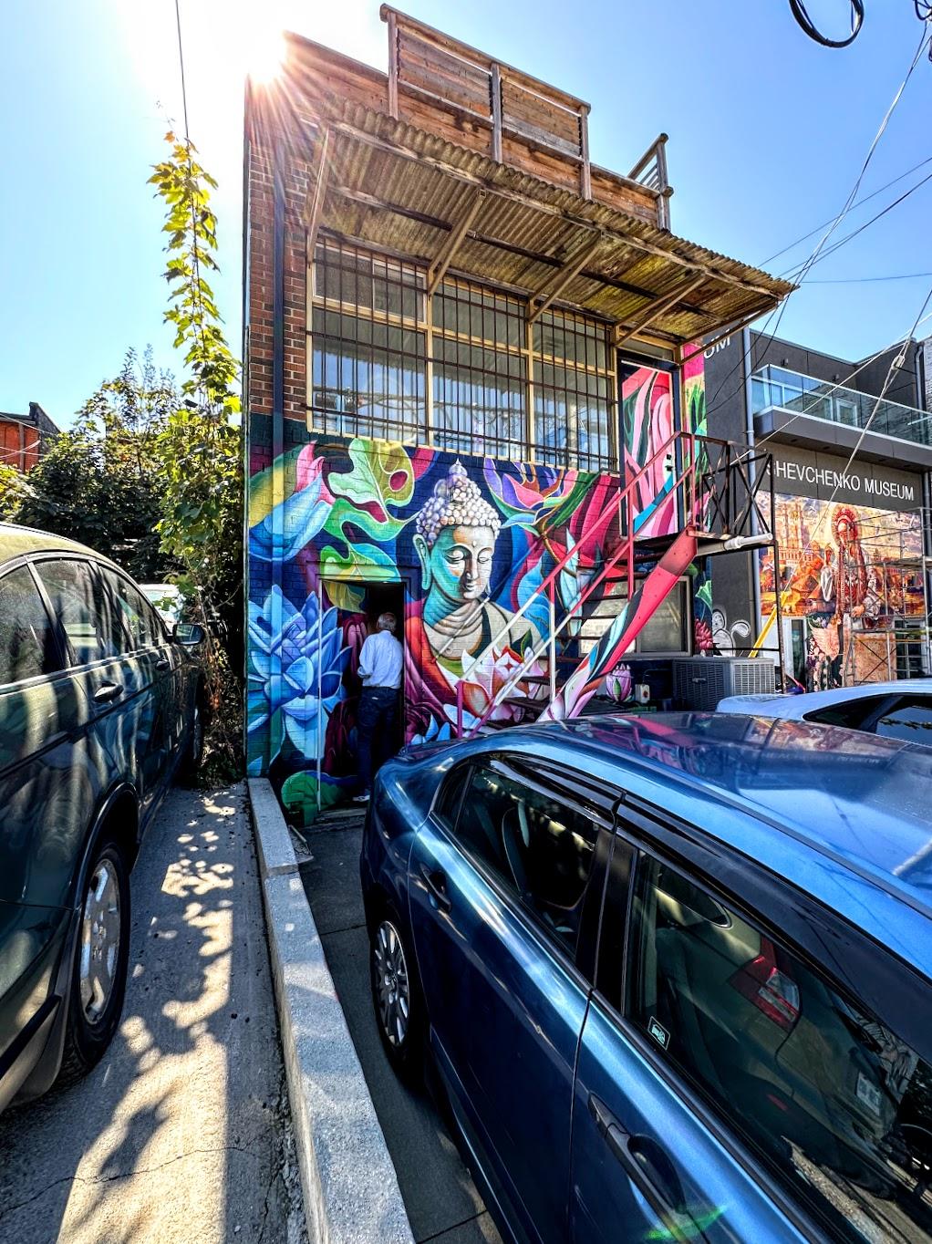 We couldn’t quite settle on any of the samples I sent. Then I found a quadriptych in an alley in Cabbagetown. The colours were perfect for the rainbow he was using in his video.