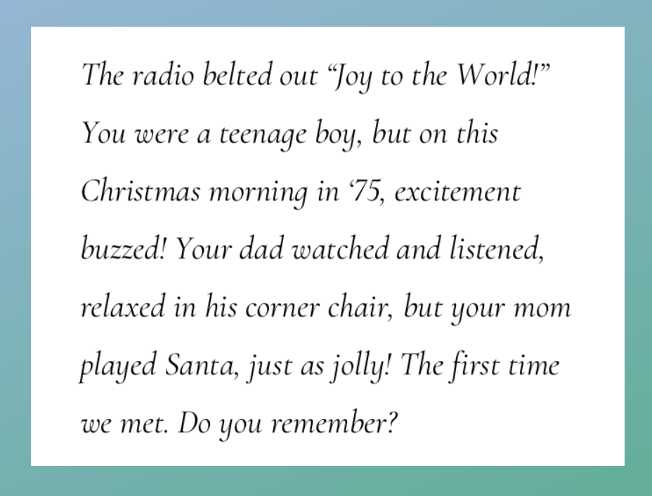 Lauren – She knew I was pregnant, so the bright side is that she knew she’d be a grandma for the first time. But our daughter and grandma never got to meet. This has always been profound in Steph’s heart. Nor did she meet Michael. Very sad. She would’ve been such a doting grandma. The poem “Diane” is about her.