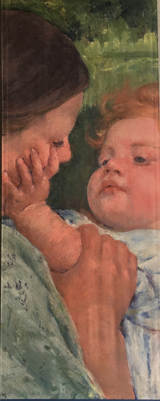 However, every so often there is a photo insert that helps make a point. One such picture is a black & white detail of Jean Fouquet’s (circa b.1420 – d.1481) painting Virgin and Child from the Melun Diptych.