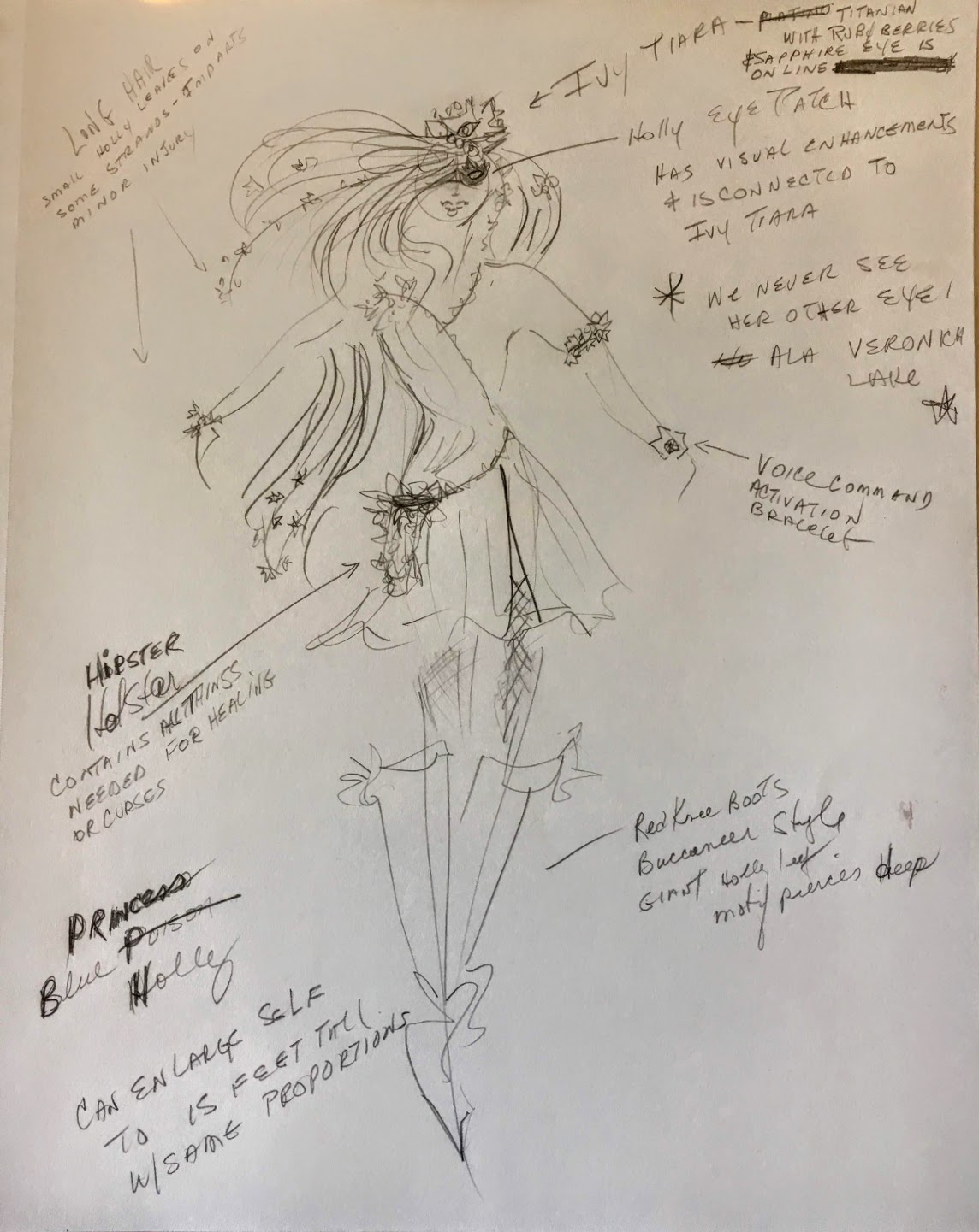 Below: Princess Blue Holly decks out for a night of fighting Crimes in a City’s Dark Corners. Rapists, muggers & murderers watch out! She’ll clean your clocks w/ titanium boots featuring retracting needles loaded with concentrated poison berry venom.