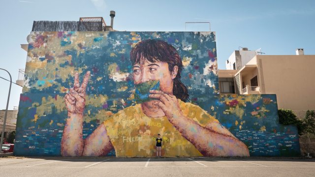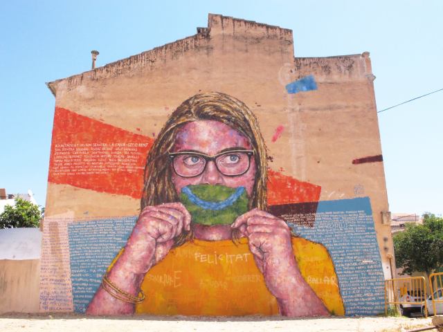 “I present to you Toni Serra, the student of Aproscom chosen through a draw to be the image of the 4th edition of the @proyecto.somriu.” SOM – RIU is a participatory mural project to aid people with intellectual disabilities. Learn more! Visit a previous GLaM post: SOM – RIU.