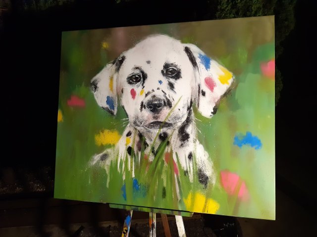 “Work done live during the last Nit de l’Art de Son Servera. As always, a real pleasure to paint in a place as magical as the Església Nova and see so many known people.”