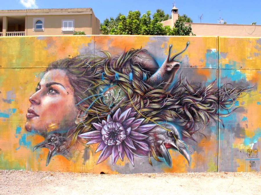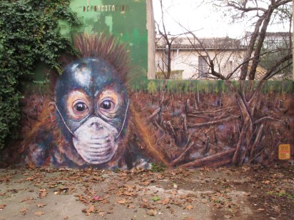 Two recent pieces Sath has done are collaborations with SIK. Above is Crow-n. I absolutely adore it. Below is a 21 second video of a mural with a big message about “the orangutans, the palm oil industry and the deforestation”