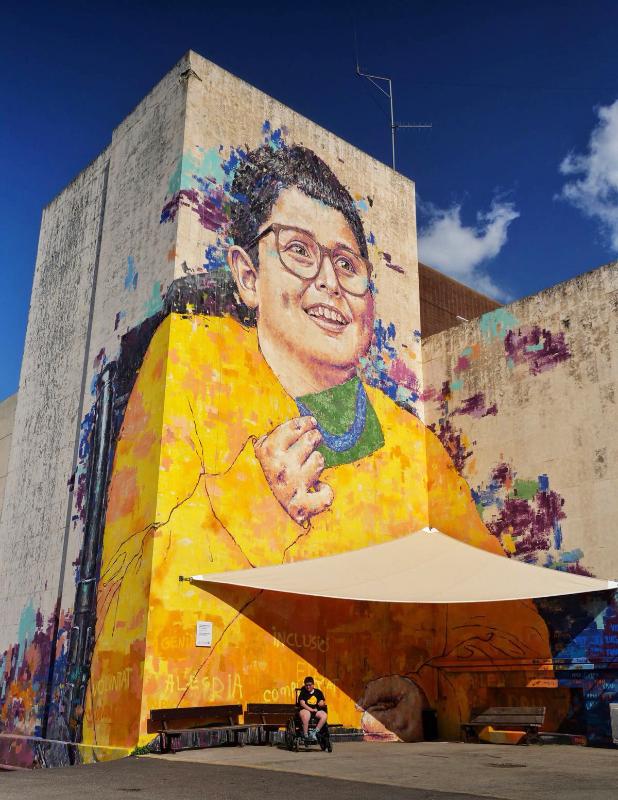 “I present to you Toni Serra, the student of Aproscom chosen through a draw to be the image of the 4th edition of the @proyecto.somriu.” SOM – RIU is a participatory mural project to aid people with intellectual disabilities. Learn more! Visit a previous GLaM post: SOM – RIU.