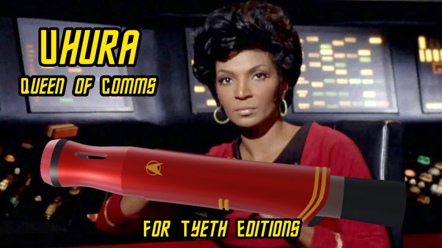 nuqneH and welcome to the other franchise of the final frontier….Star Trek. Today I present my tribute to the actress and space pioneer Nichelle Nichols who portrayed Lt Nyota Uhura in the original Star Trek series (and the first six movies) and sadly passed away recently. It was the news of Nichelle’s passing and a conversation with my friend Resa (from Graffiti Lux and Murals – Link: https://graffitiluxandmurals.com/ ) about Star Trek, the Emmy’s and Nichelle’s role that prompted me to create a saber in Ms Nichol’s honour.