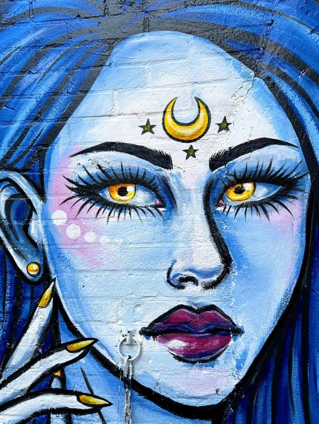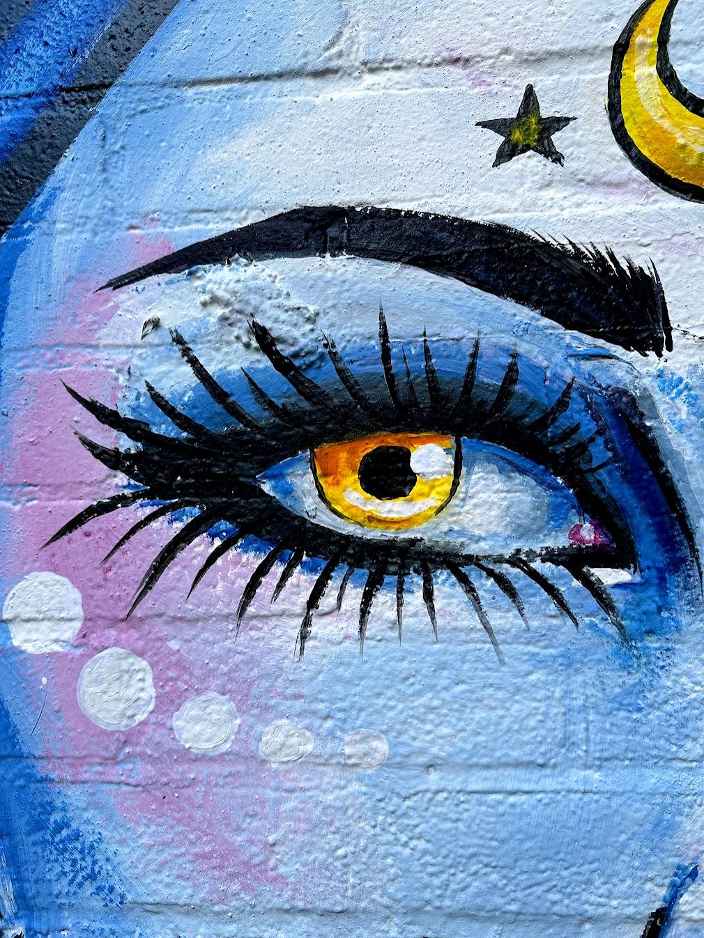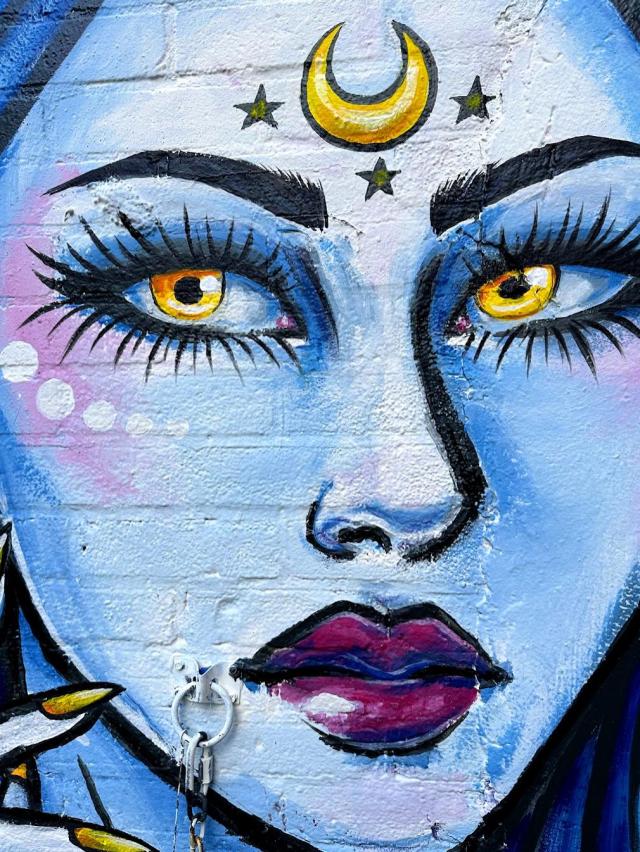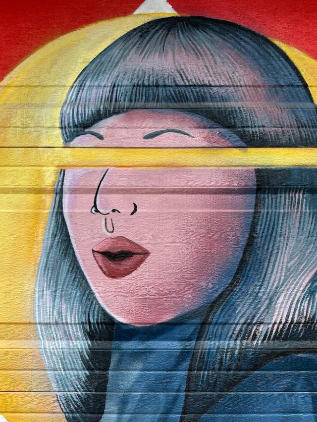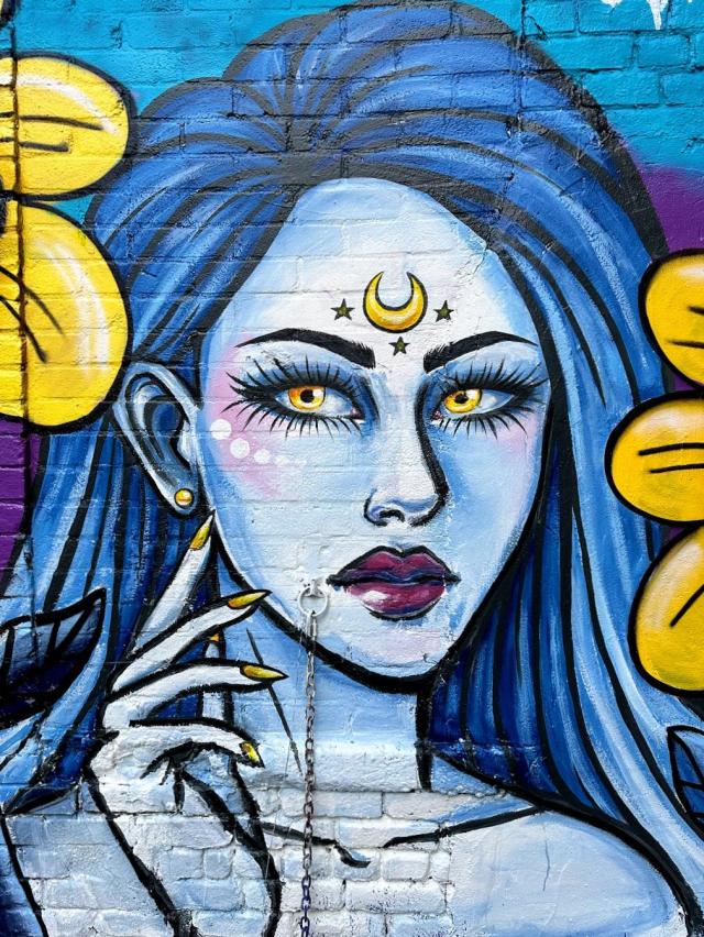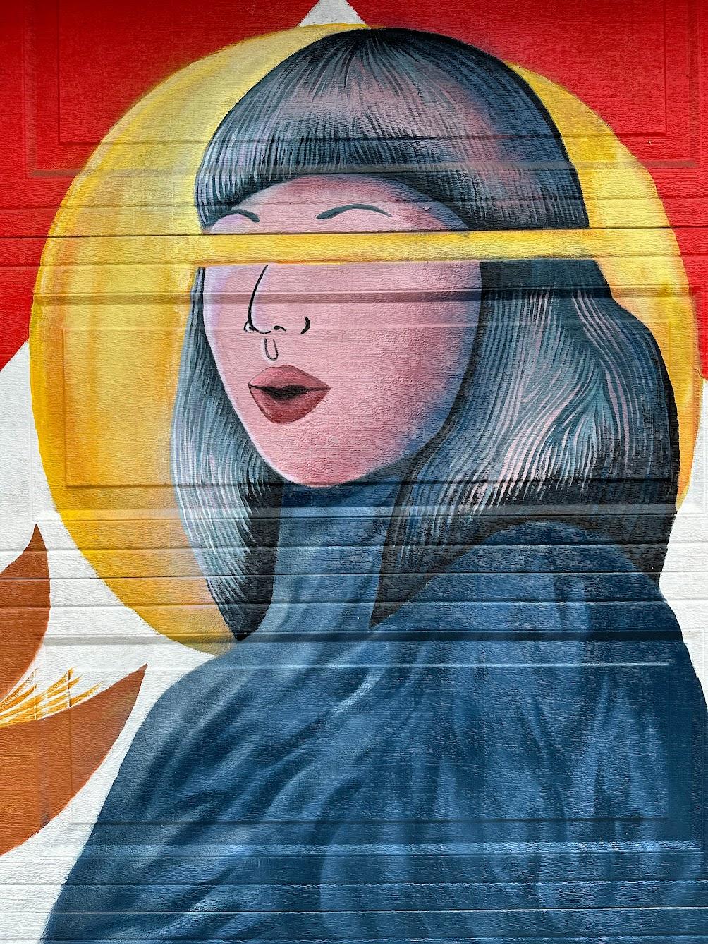 Resa – The quadriptych was painted indoors on canvas. They were coated and moved outdoors onto an alley wall of a dance school.