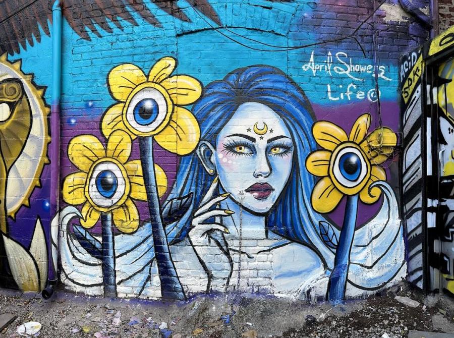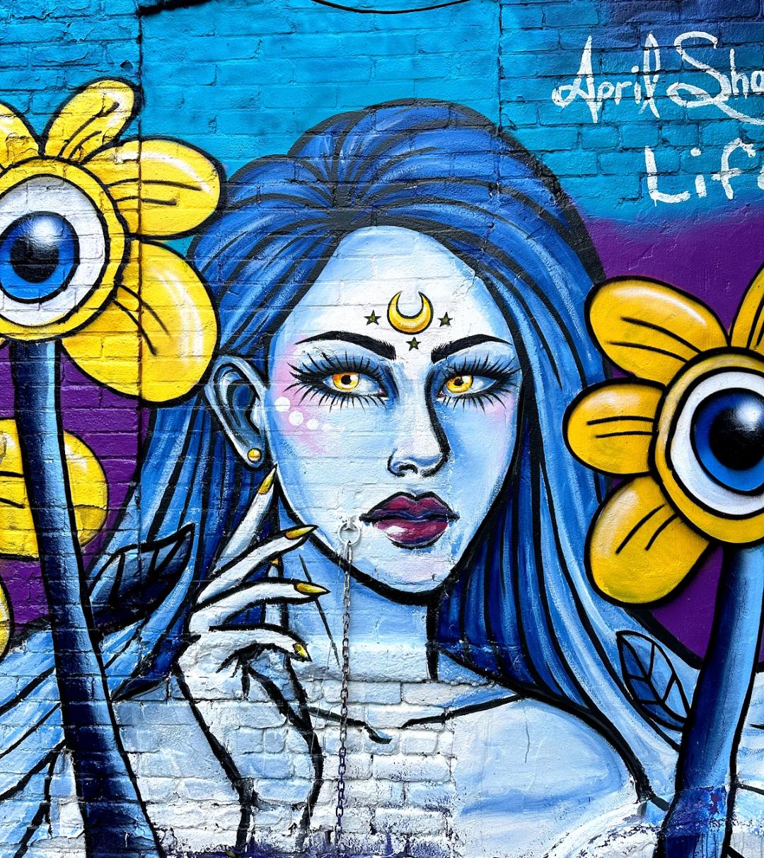 We couldn’t quite settle on any of the samples I sent. Then I found a quadriptych in an alley in Cabbagetown. The colours were perfect for the rainbow he was using in his video.