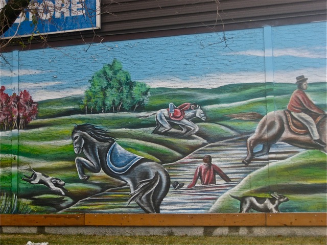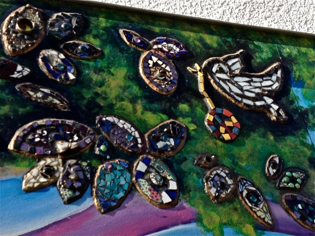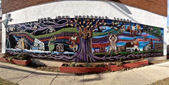 The building, which shows the mural on 2 sides, has an architectural zig-zag. Here’s side 1.
