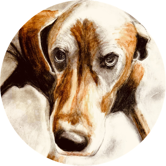 Somehow, to me, animal love is proven with those words. I was always asking about him, and one day drew him. It is my first and only animal portrait.