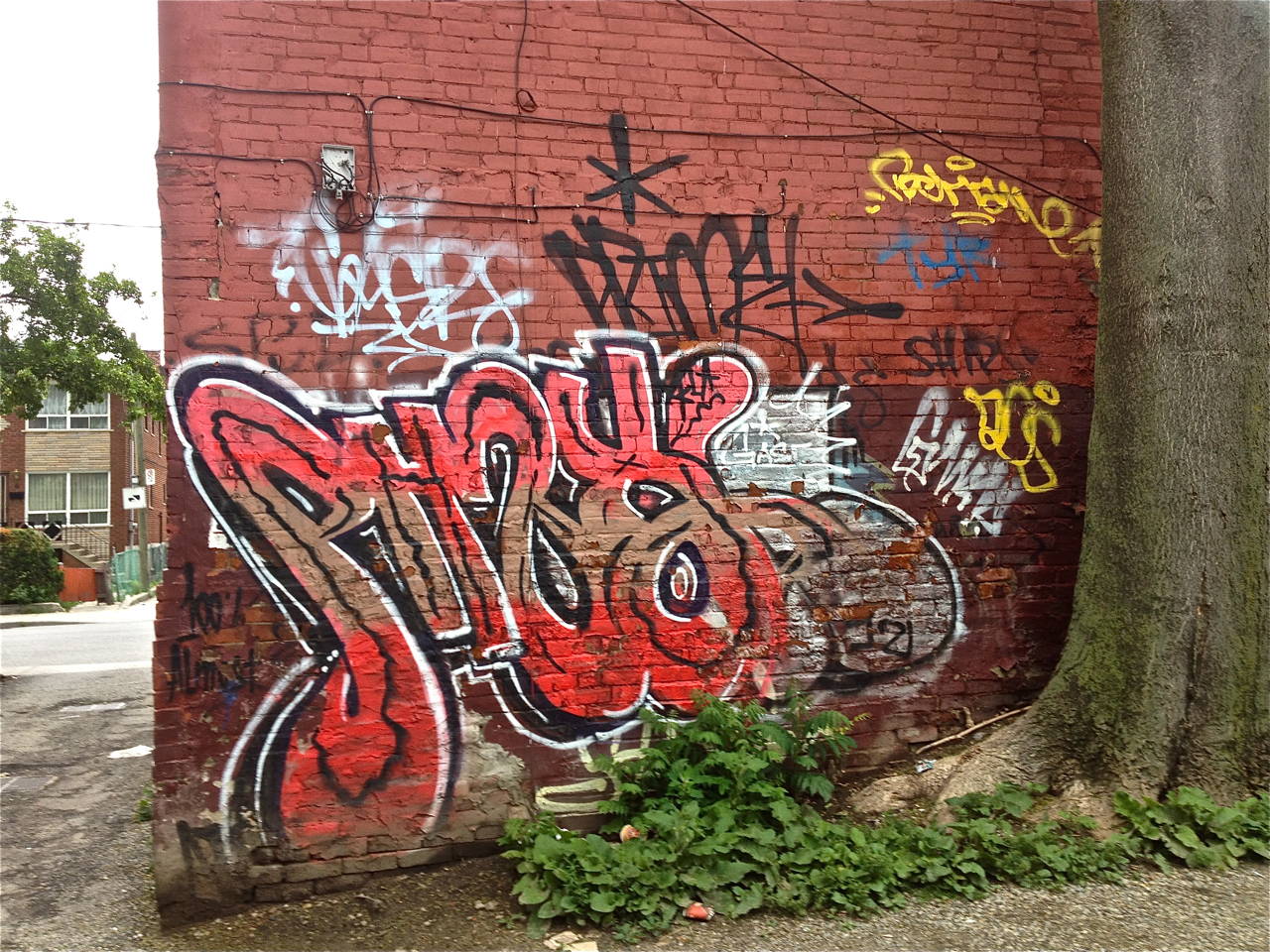 East of Dufferin Street, south of Queen W. W. is this corner piece that marks the alley.