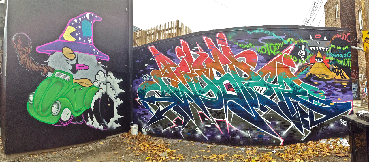 Viewing South to North in the Ossington alley just N. of Queen St. W., this sweet bit ends at the corner.